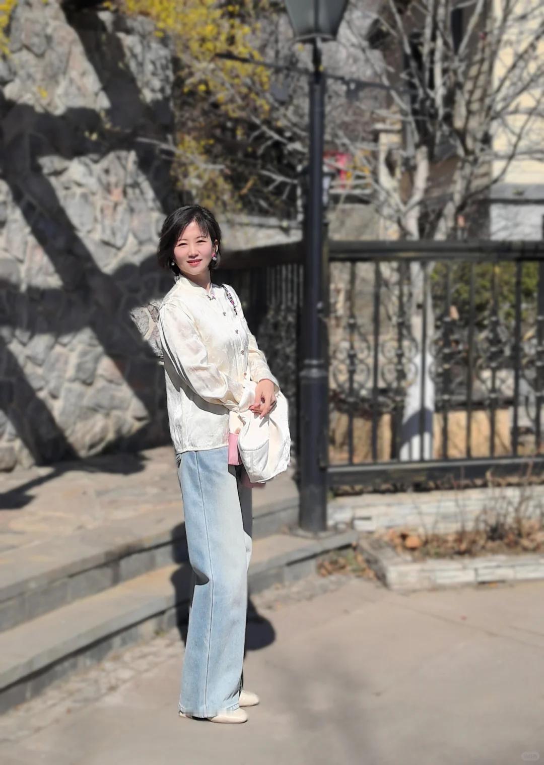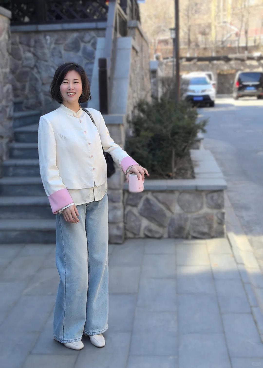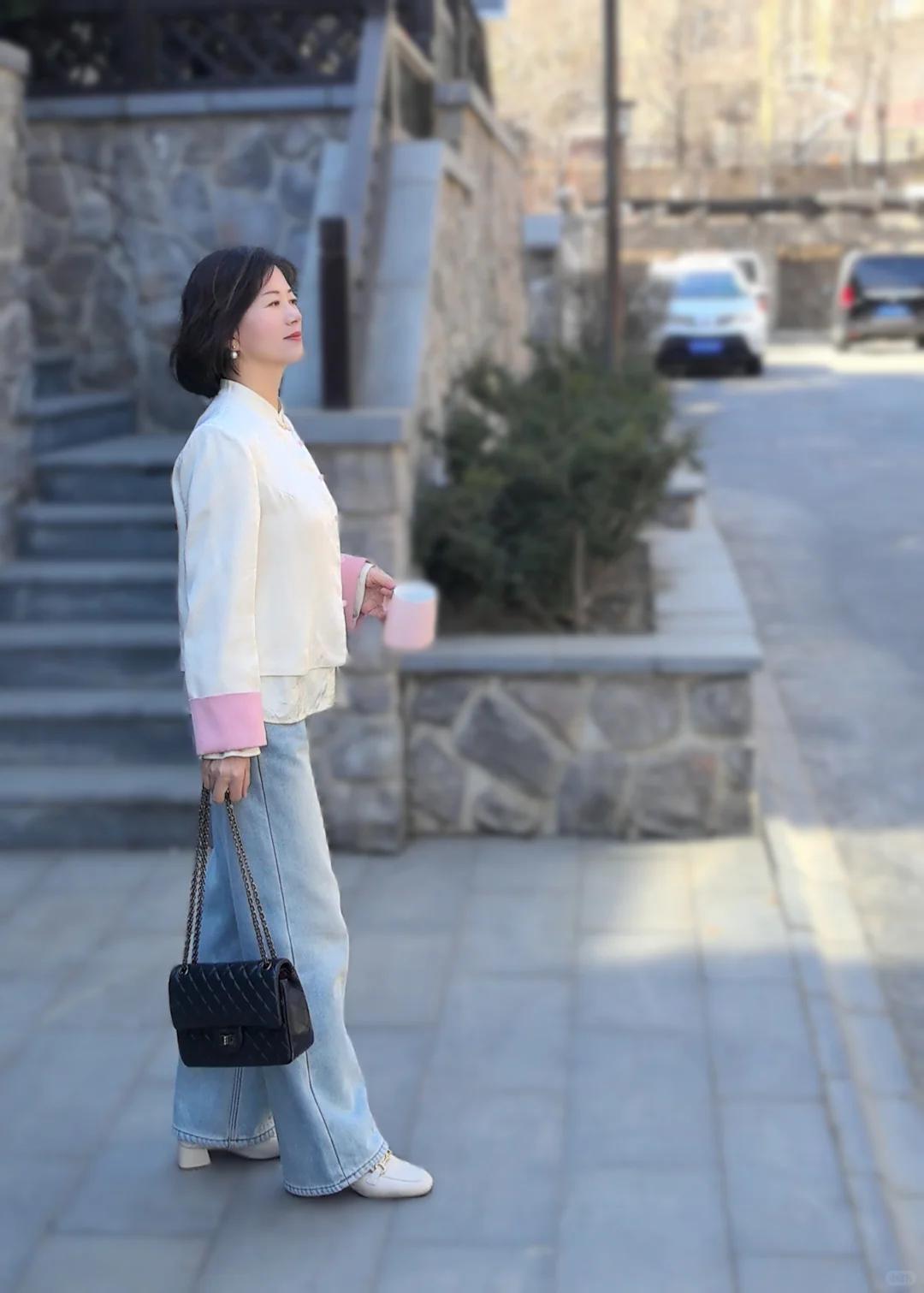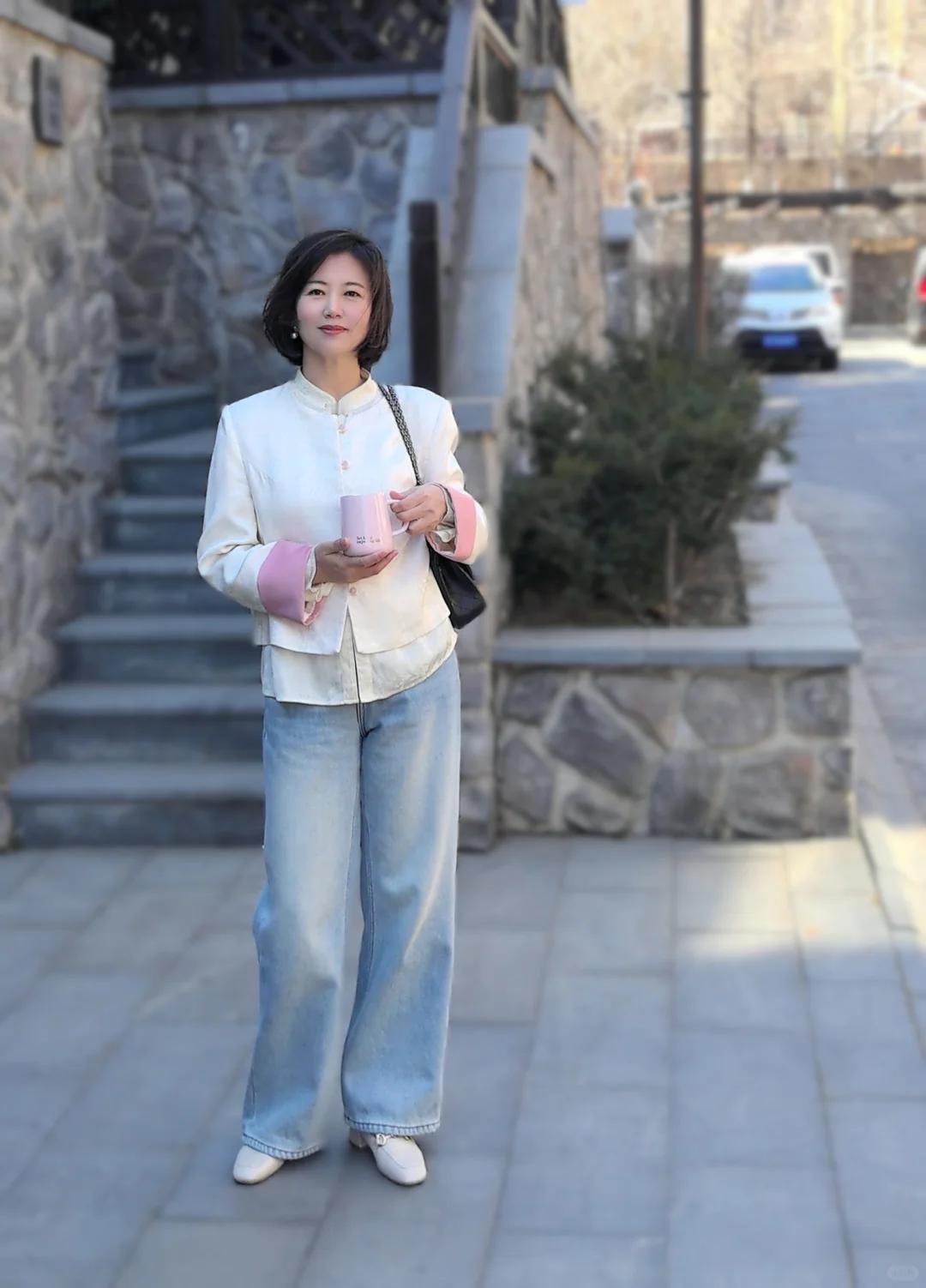 50+姐姐的新中式穿搭,传统与现代的温柔对话 50+的年纪,反而更爱东方韵味的从容美。分享一位时尚博主:上官,这套新中式混搭风真的太美了,复古与现代时尚的结合,收获满满高级感! 穿搭公式:新中式立领外套+同元素衬衫+阔腿牛仔裤 ▫️外套选改良版短款,盘扣设计点缀恰到好处,不会过于隆重 ▫️内搭真丝提花衬衫,暗纹流动如写意画,举手投足都是诗意 ▫️下装用牛仔阔腿裤中和雅致,踩一双尖头平底鞋,步履生风也温婉 搭配心机: ✔️用珍珠耳钉替代传统玉饰,更显现代精致感 ✔️斜挎一只竹节纹手包,东方意象与日常感平衡得刚刚好 ✔️发间别一支珐琅发簪,走动时若隐若现,比夸张配饰更动人 50+的穿搭不必追赶潮流,把千年文化穿成日常,每一步都踏着岁月的从容。这种「不刻意的美」,大概就是中式穿搭最动人的地方吧~ 💫