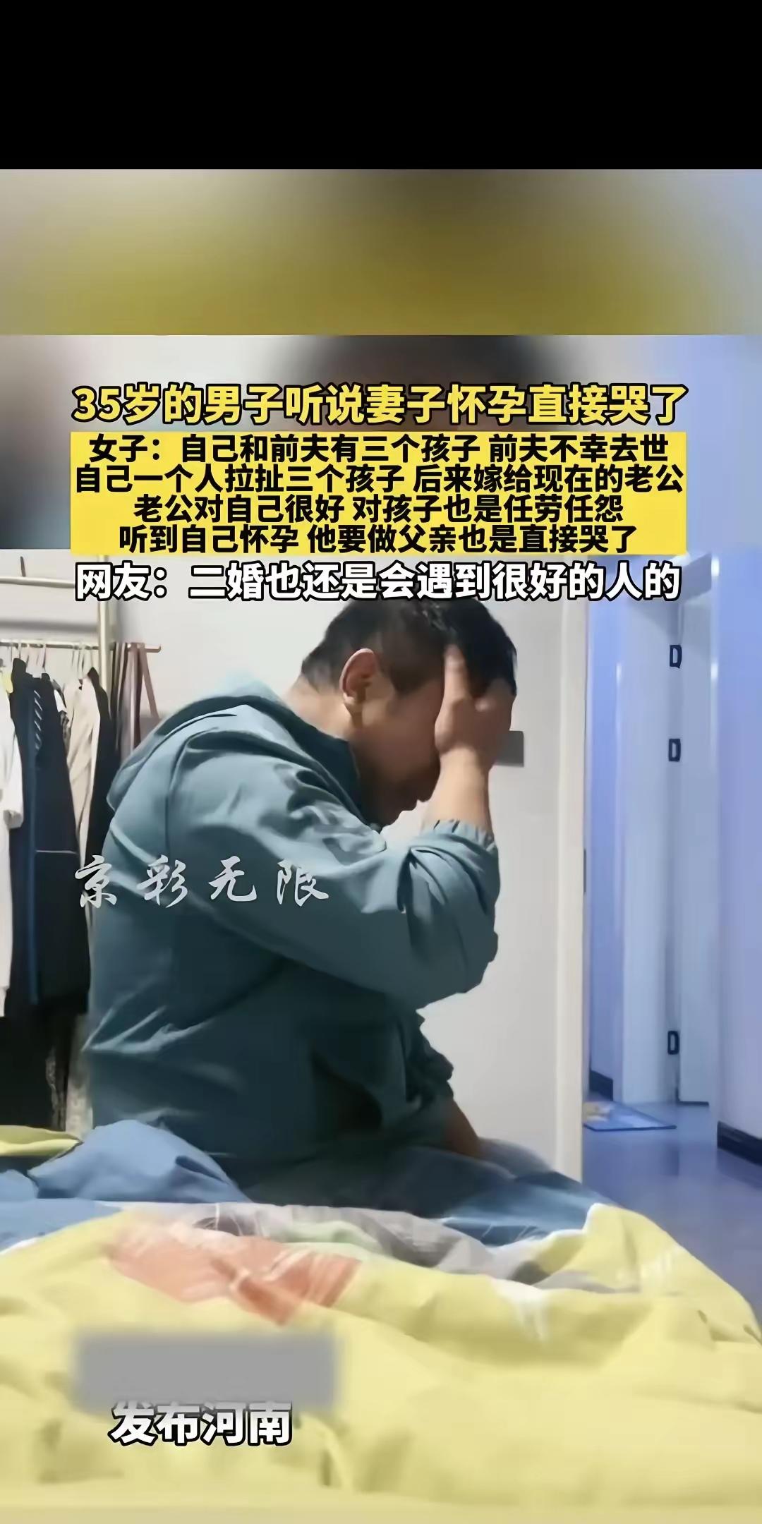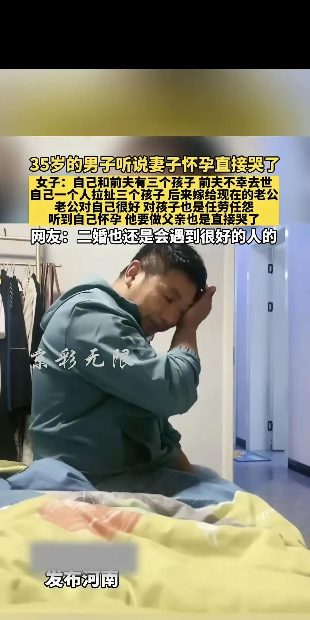 “泪奔了!”35岁3娃男子陪妻子孕检,医生一句“有了”,他当场哭成泪人。妻子身份曝光后,全网更是哭成了一片!网友:这是今年看到最温暖最感人的故事。 虽然家里已经有三个孩子了,但是35岁男子这次陪妻子来孕检,心里既激动又忐忑。激动的是,妻子有可能真的怀孕了,但忐忑的是,万一没怀孕,自己岂不是空欢喜一场。 挂号,看医生,开检查单,检查,男子陪着妻子一个步骤一个步骤的完成,心里一直在猜想各种结果。 不过,让他没有想到的是,当他们拿着检查结果找到医生时,医生只说了一句:有了!男子当场就哭成了泪人。 而且男子一边抹眼泪一边说:咱们这个家终于完整了!说完更是百感交集。 原来,男子和妻子是二婚。妻子前夫早逝,留下了3个孩子,当初男子和妻子交往的时候就知道这种情况。但他非但没有嫌弃妻子,反而更加用心的追求妻子。而结婚后,更是把三个孩子视为己出精心呵护。 妻子也是被这个男人的真诚和爱心所打动,婚后对老公也是极尽体贴呵护。虽然男子没有强制要求一定要再生一个他们的孩子,但能遇到这么好的男人真的太幸福太幸运啦。所以女子心甘情愿的也希望给老公再生一个他的孩子。 这次检查真的怀孕了,能看得出来男子是真的既激动又高兴! 难怪有网友说:原来二婚也能嫁给这么好的人!真是太幸运太幸福了。 也有的说,如果是我,我也愿意给这样的男人生孩子!太负责太有男人样儿了 其实,女人不怕生孩子辛苦,也不怕生孩子难,甚至有的不顾自己的安危也要生下孩子,但女人怕的就是孩子出生后自己是“丧偶式育儿”。 所以,只要男人靠谱,女人肯定愿意给你生孩子! 最后想说的是,这个继父的眼泪,并不是简单的喜极而泣,而是他接纳3个继子女视如己出的踏实,也是对妻子掏心掏肺的疼惜,更是盼着拥有二人共同血脉、让家圆满的愿望。 他明知妻子带着前夫的孩子,但却毫无嫌弃,婚后倾尽温柔护一家周全。而妻子,也懂他的深情,感恩他对孩子们的真心付出。所以才主动想为他生个娃。 这份双向奔赴的爱格外动人! 另外,婚姻从不是将就,不要觉得离个婚天就塌了。其实,离婚后一样也可以再嫁,二婚也能遇到合适的良人,日子真不是和谁过都一样的。 愿每份真心付出都能换来双向奔赴,每个真诚待人的人都能得偿所愿、被温柔以待。你们对此怎么看呢?