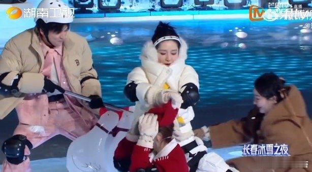 谢娜一人比赛全队慌张冰雪游戏南方小土豆才最好玩!接力棒后开启“艰难前行模式”,走路晃三下摔一跤,全队慌张🈶长春冰雪之夜直播长春冰雪之夜