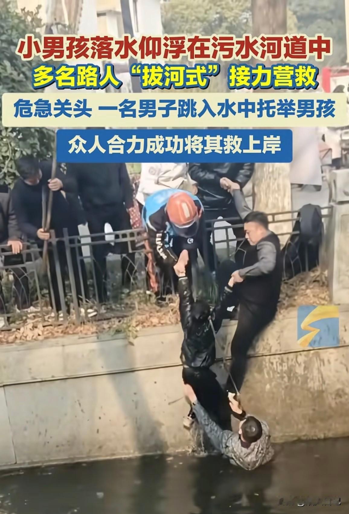 好人好事就该让大家都知道 12月17日在安徽阜阳一河边,一名10岁男童在河边玩耍时不小心掉入河里,男孩不会游泳在河里挣扎,情况十分危急。 一外卖小哥王哥送餐经过此地,听到孩子的呼救后立刻停下救援,先是尝试用绳子、铁锹柄让男童借力上岸。尝试了几次后,发现不行,外卖小哥于是翻过栏杆将自己半挂在河岸,想让男童抱着自己的身体往上爬。但最终因为男童长时间泡在水里体力不支,岸边也没有抓点,未能成功。小男孩的玩伴一直没有离开,纷纷在岸边给小男孩加油,喊着‘凯哥加油、凯哥我们相信你’。 后来一顺风司机李哥(灰衣男子)见到这种情况后,直接跳入1.5米深的冰冷河水中,用双手托举小男孩。这时一名退伍军人高哥(黑衣服男子)也加入了救人队伍中,退伍军人与外卖小哥在岸边合力拉拽,最终在几人的合作下将小男孩成功救上岸。 在救援过程中,围观的小朋友不断的为落水小男孩加油鼓劲,喊出‘凯哥我们相信你’。等几人将落水儿童救上岸后,小朋友大声喊‘你们都是我们的偶像’。 外卖小哥救完人后就离开了,继续送餐订单虽然超时了,但顾客表示理解;外卖小哥救人的视频被扩散后,他的事迹在网络上被传播。后来淘宝闪购平台得知此事后,对小哥奖励1000元的慰问金。12月18日退伍军人和顺风车司机的身份也被相继确认,相关部门已着手对几人的行为申报‘颖上好人’称号。 获救男孩身体无大碍,男孩父亲想对几人表示感谢,但都被拒绝了,都称‘只是举手之劳’。 人间自有真情在,凡人微光,也可照亮前方。这几位平凡的人却做着不平凡的事情,没有动人的口号,却突显最动人的善良担当。他们用行动告诉我们,英雄从来不是遥不可及的传说,而是身边挺身而出的你我。 请大家为这几个不平凡的人点赞! 日常好人好事 乡村好人好事 小哥救人 安徽好人好事 16岁男孩救人 沂水好人好事 淮阳好人好事