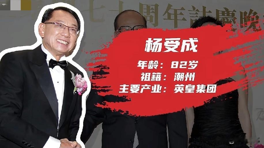 杨受成,一生大起大落,现实版“打不死的小强”,他的人生剧本,比TVB剧还刺激! —12岁辍学码头贩卖钟表,18岁赚到人生中第一个百万。20岁死皮赖脸地拿下欧米伽代理,紧接着是天梭、劳力士等名表代理,最终成为钟表大王 —38岁破产欠下3.8亿,跪着求银行“打工抵债”,被汇丰扫地出门,不得不远赴中东 —41岁,东山再起,仅3年时间,靠着20万本钱,在中东“炒黄金+外汇”,疯狂赚钱,不仅还清了债务,还带着2000万美刀杀回香港,重整钟表行业 —50岁跨界收购正在亏损的“飞图娱乐”,改名“英皇” 疯狂砸钱力捧16岁的谢霆锋、宋祖儿、Twins等一众明星,当时还有人说他“钱多人傻”,结果他却捧红了众星,震惊同行,一举拿下“娱乐一哥”位置! 有人分析他的经商哲学,说普通人也能学! ✨破局思维: 当年李嘉诚卖不掉的地皮,他低价接盘改建成豪宅,赚得盆满钵满; ✨赌徒心态: 中东淘金时,他把全部身家押注日元贬值,24小时守着电话赌汇率; ✨慈善生意经: 累计捐款超20亿,却把“英皇慈善基金”做成了家族传承的金字招牌。 如今,82岁的杨老板,被曝出166亿港元债务,还能像当年那样东山再起吗? (资料来源于百度百科)