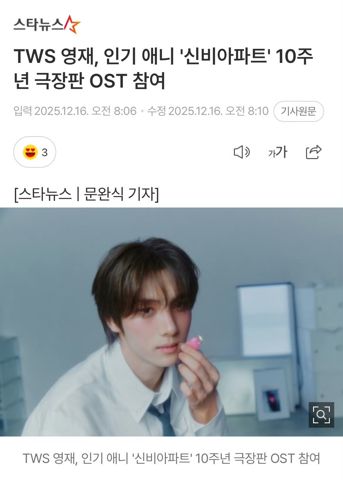 崔英宰首支个人OST 崔英宰cover《左右盲》播放量达150万,油管队内单人最热门视频第一,个人演唱《神秘公寓》ost,将于1月上线,恭喜帅哥🎉