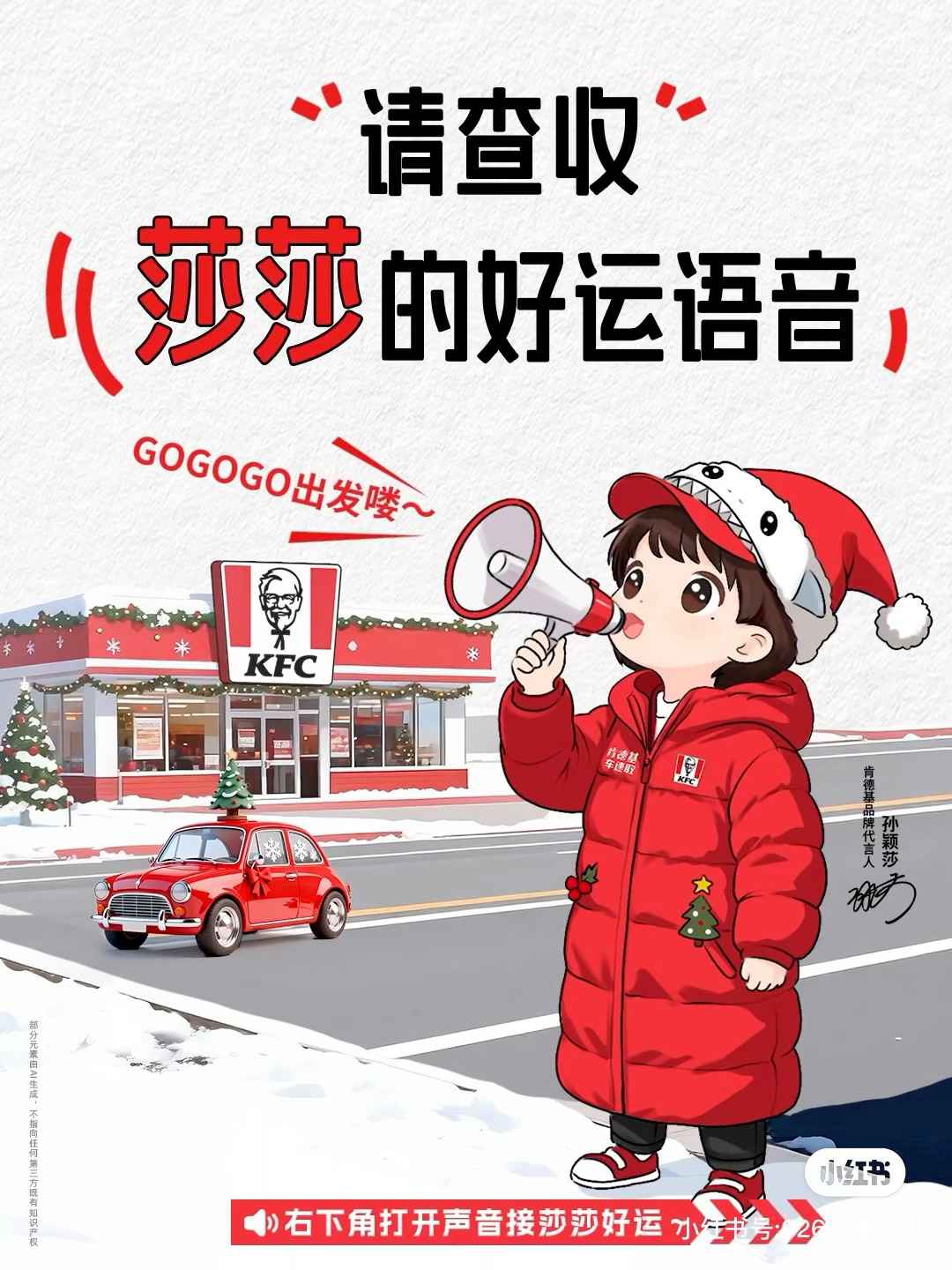肯德基品牌代言人孙颖莎来查收莎莎的好运语音啦~go go go 一起出发