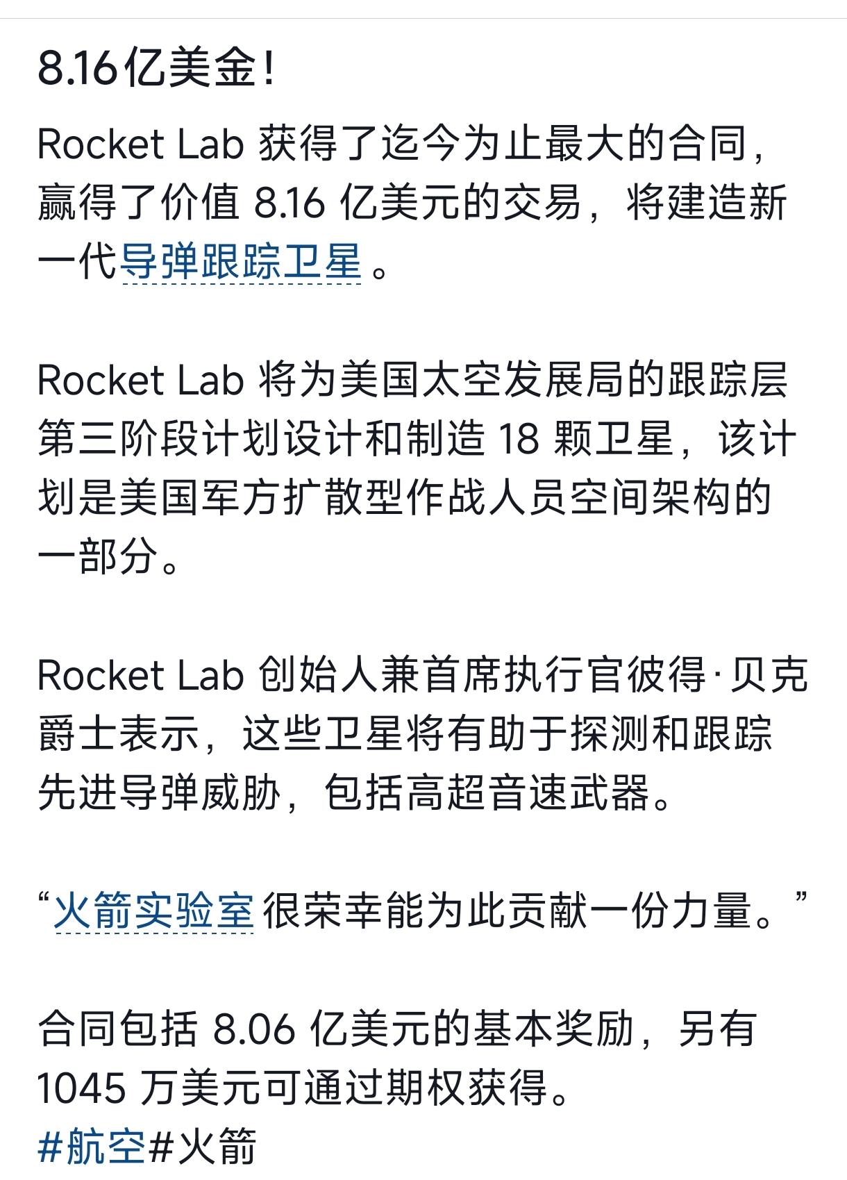 美股航天人气股Rocket Lab获得8亿美金订单,建造新一代导弹跟踪卫星。 周五Rocket Lab大涨带领美股航天板块。 相信我,美国人所图不止太空算力,登月打卡这么简单。这是中美共振的新赛道。 是你你跟不跟?评论区打出答案。