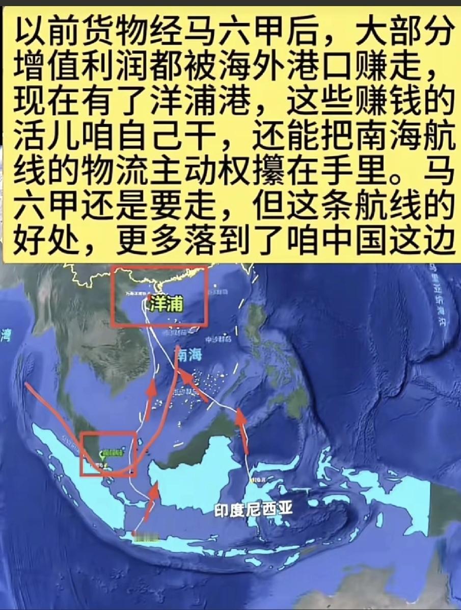 新加坡就好像大号服务区,加油,休息,修船,分销货物,转运货物都在他们那里,现在洋浦港这个服务区更大,干一样的活,效率更高,服务更好,收费更低,搞到最后,大家就会只在新加坡加个油,知道跑到下一个服务区更有搞头,实际和开长途大卡车差不多,你要说新加坡位置好,加个油就可以了,憋着尿也要去洋浦啊!那边有红包拿。
