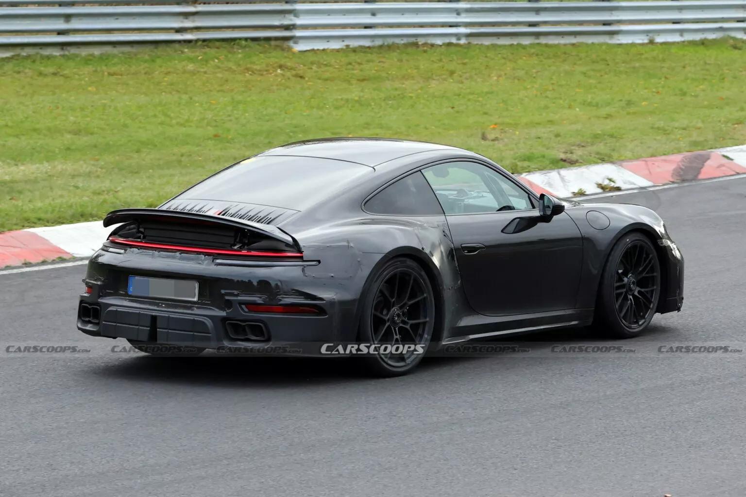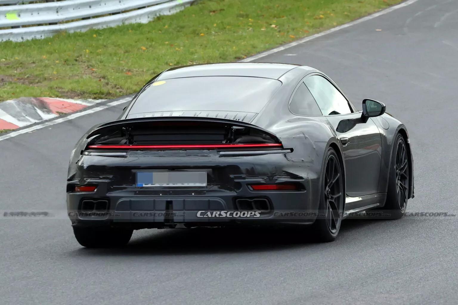 保时捷911 Turbo S Touring测试车曝光,外观小改,大尾翼拉风。