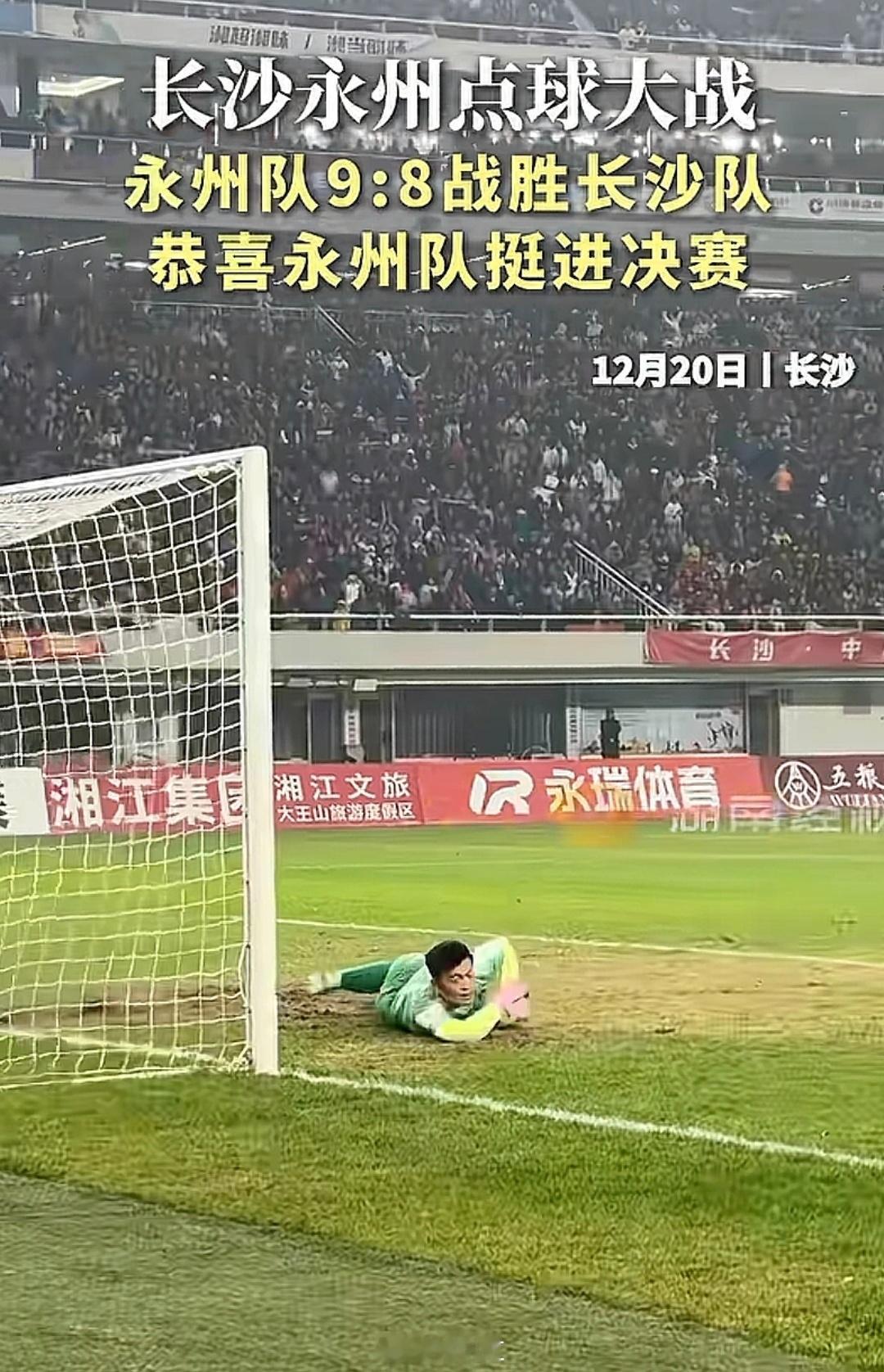 永州淘汰长沙,今天这场半决赛看了全场直播,点球环节真的看的太刺激了。罚点球的球员和防守的门将紧张程度不言而喻。论球员实力和板凳深度永州队是没办法和长沙队比的,但永州队确实特别拼。这就是足球啊!不确定性太多了。永州第二现场都这么多人,这届湘超办的太好了,把湖南的足球文化提升了。对未来足球运动的发展,一定有着推波助澜的作用。