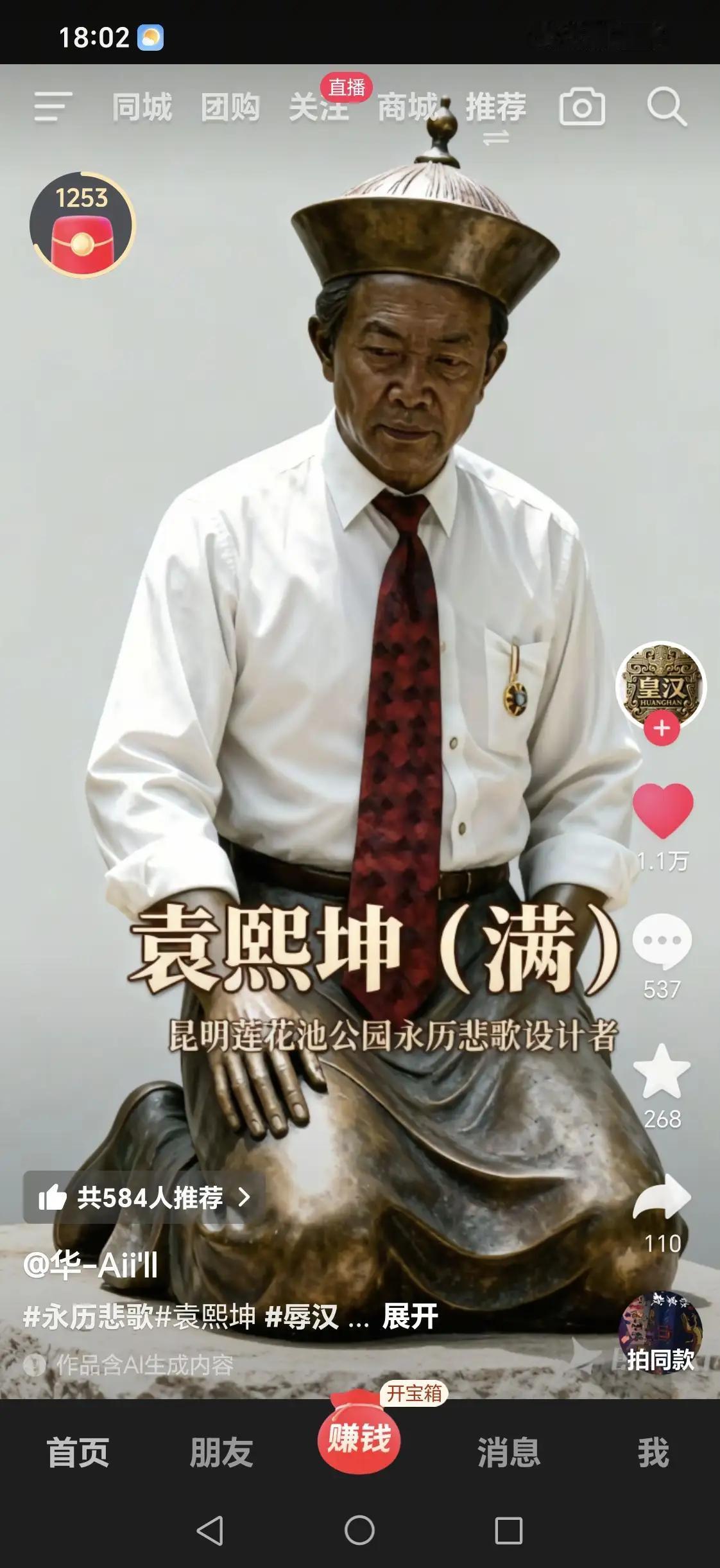 永历悲歌主题,必须让朱由榔站立、洪承畴吴三桂跪下 昆明池水曾楼船,后人要写前人传。 风流总是忘记起,难酬故国亦震寰。 袁熙坤这个满人,这个旅日满人,把他的对中国对大大明对满清的态度,以及要对此类问题的引导,通过雕塑表现出来了。 他如果是仅仅一个雕塑,还可以理解。同一个人设计,同一个公园,同一个地方,他让朱由榔倒下了,却让洪承畴站起来。这就是意识形态的问题了,他有设计目标,而且很有罪恶目的。就是要贬明贬汉,就是迎清迎满。 实际上在我们的潜意识当中,所有的中国人,尤其是现代中国人都应该是对南对明朝对南明有一丝同情心,毕竟他们是代表汉人,这是挣扎的,毕竟满清对汉朝实行了很多诸如扬州十日、嘉定三图那样的罪恶行径。 永历悲歌这个主题,应该是悲壮拼搏的,也应该是慷慨激昂的,是奋进的历史洪流,是不屈的大明风骨。对袁熙坤这类鬼贼,必须揭露他,打击他。 因此,昆明莲花池公园这个哀叹地方,必须尽早设计新雕像,让永历帝朱由榔站起来,必须让洪洪承畴这个二臣跪下去,还有吴三桂贼子必须跪下去。让人们去品评理历史的厚度,感慨时运之无奈。