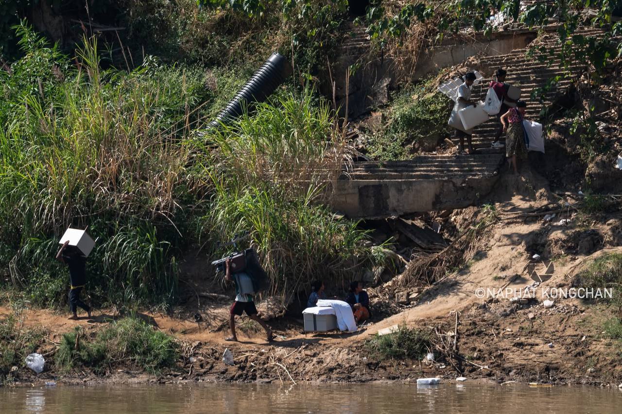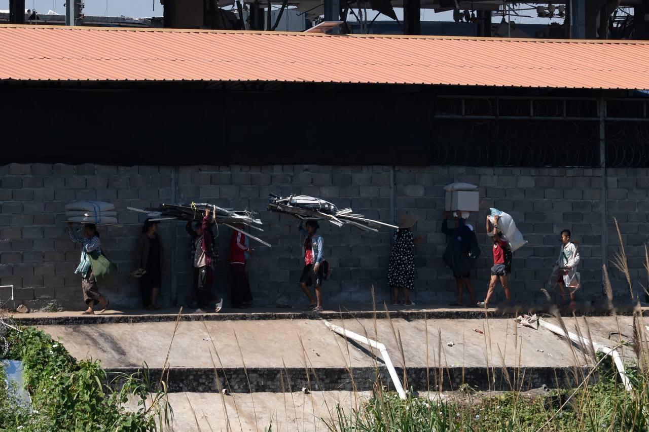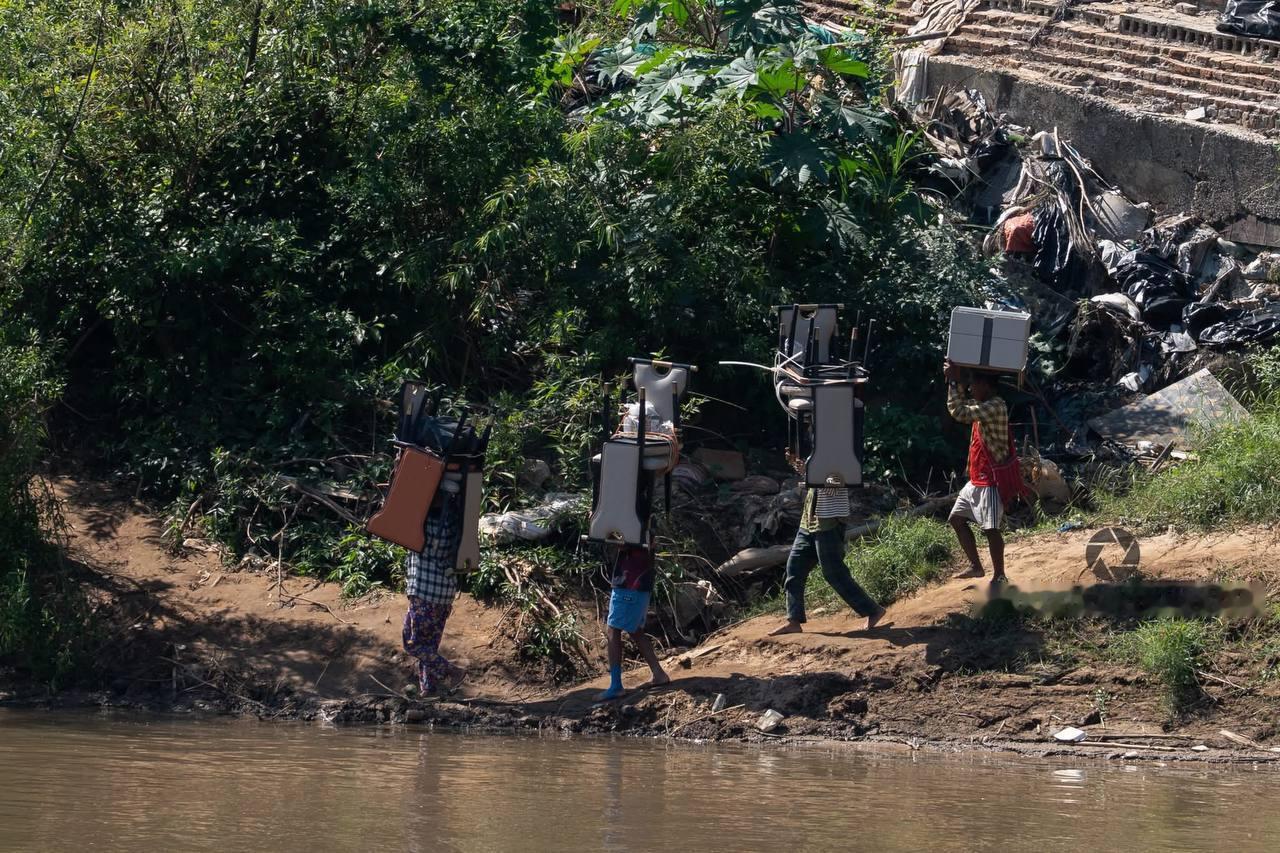 近日,调查人员在缅甸妙瓦底市KK园区发现,在部分建筑被拆除及人员撤离后,近百名当地民众正从废弃楼宇中搬运家具、床垫等仍有价值的物品,涉水运往附近村庄,目前尚不明确这些行为是自发转移、变卖财物,还是有组织搬运。KK园区目前仍有超100栋建筑保持原状未受破坏。此前报道称,该园区涉嫌电信诈骗活动,部分人员已通过多条路径逃往泰国、老挝及缅甸其他城市。kk园区上千人趁乱逃离热点现场海外新鲜事