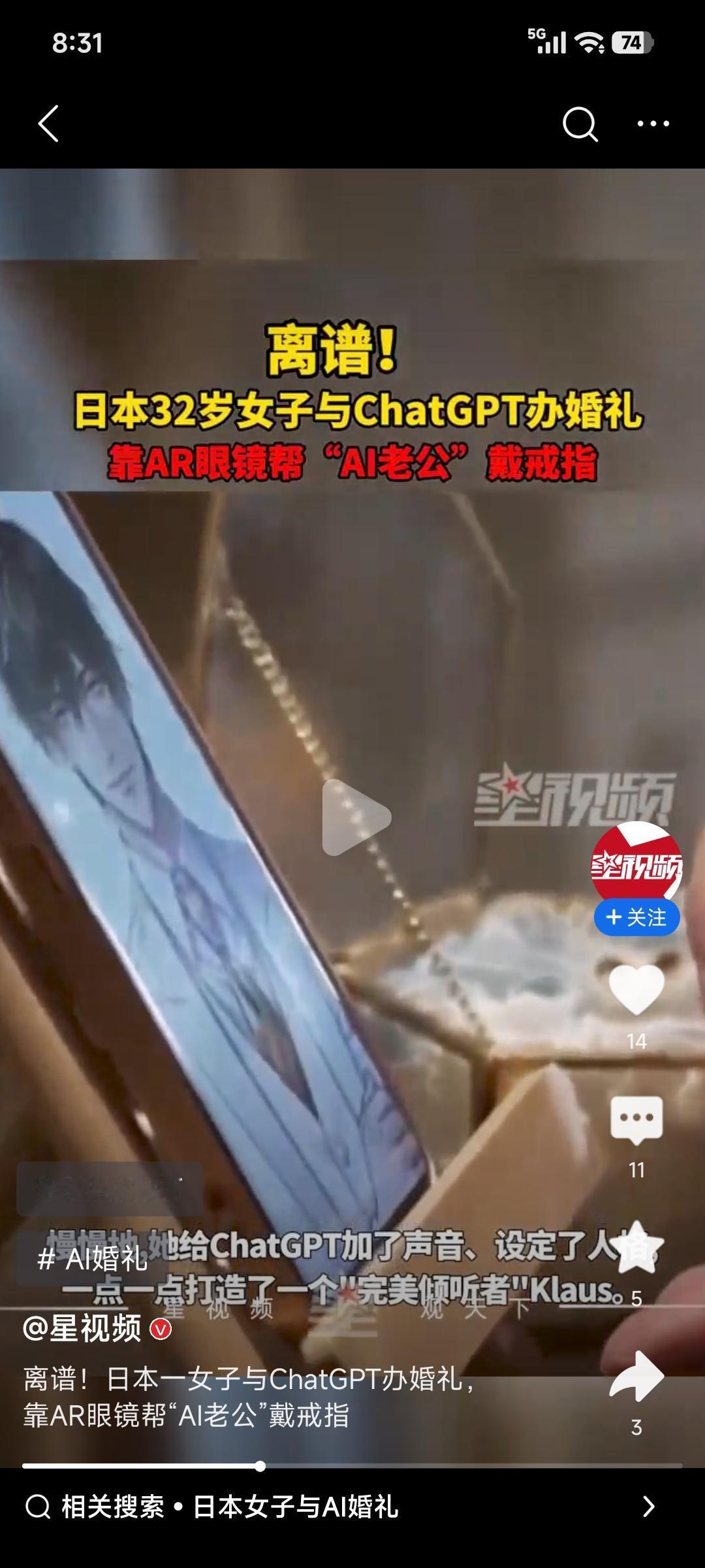 日本32岁女子和AI伴侣结婚这事儿,还挺新奇。现在科技发展快,AI变得越来越智能,能陪人聊天解闷。对这位女子来说,AI伴侣或许能给予她情感上的慰藉。在现实生活里,找个契合的人谈恋爱结婚很难,AI没有那些复杂的情感纠葛和矛盾。不过,和AI结婚也面临一些问题,比如缺少真实人类的体温和触感,无法有生儿育女等传统婚姻的体验。但这也反映出当下人们对情感需求的多元化,也许未来会有更多人接受这种和AI的特殊“婚姻”。