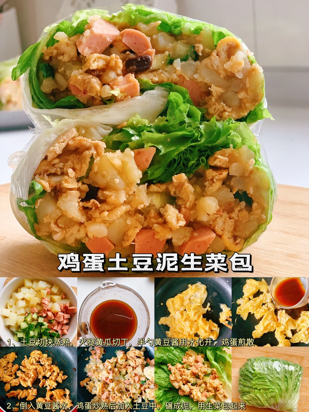 四款低卡生菜包分享给减脂的姐妹👭~~ [飞吻R]hi,又是快乐的一天啊❗ 【详细做法见图片】 ✅蟹柳滑蛋生菜包 ✅紫薯鸡胸肉生菜包 ✅火腿鸡蛋生菜包 ✅鸡蛋土豆泥生菜包 ✨✨小提示: 1️⃣蟹柳中会有点腥味,加点料酒或者柠檬🍋汁可去腥。2️⃣四片生菜包才能包的住(可以去掉生菜根)。 3️⃣生菜洗完需脱水或者晾干水分。 [向右R] [请友好R]随手分享减脂餐,喜欢请关注哦❗