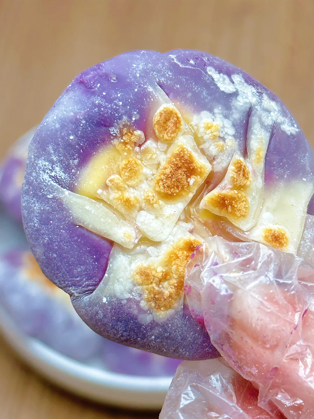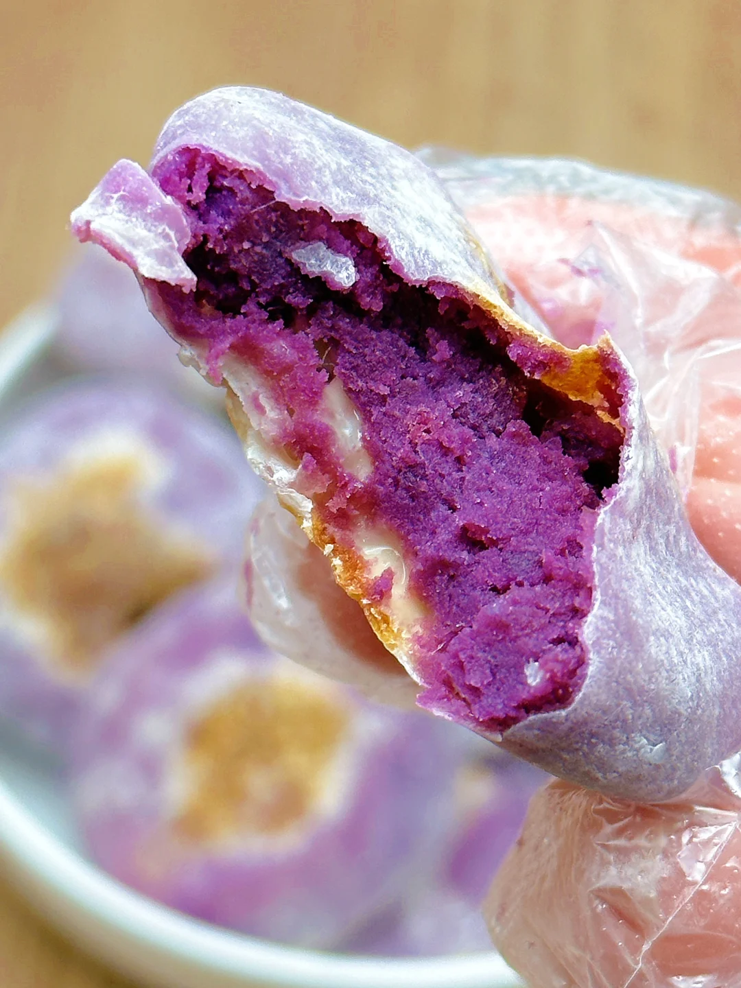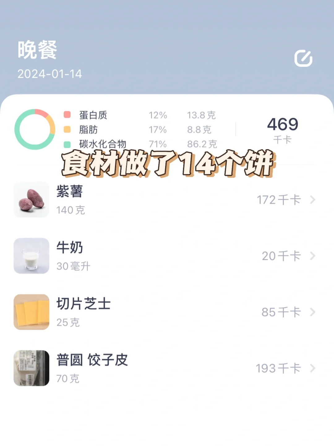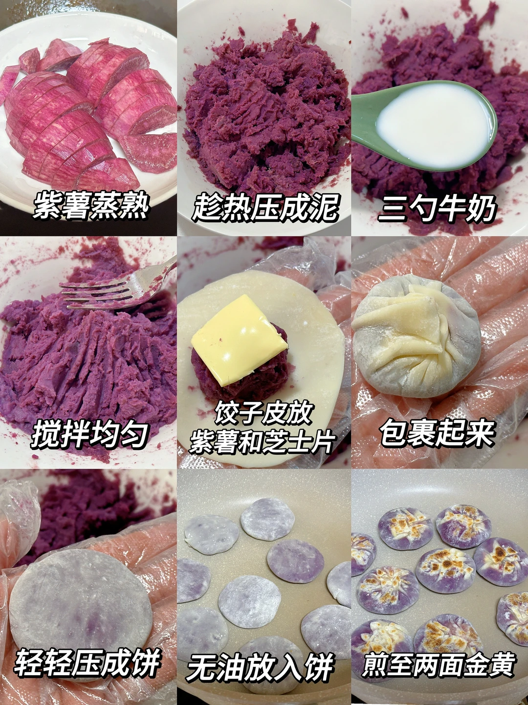 🥗食材:紫薯、低脂芝士片、饺子皮、牛奶