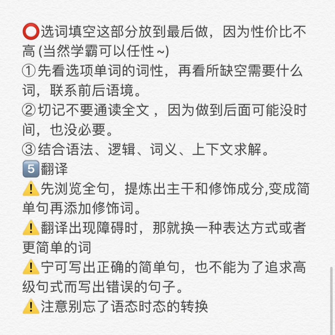 ⏰ 时间分配: 听力部分听完再涂卡,阅读先做仔细阅读和段落匹配