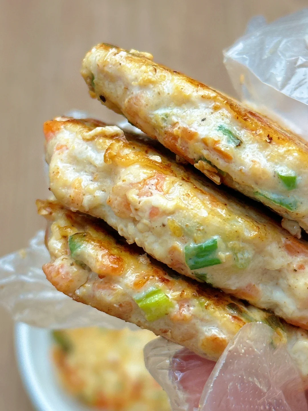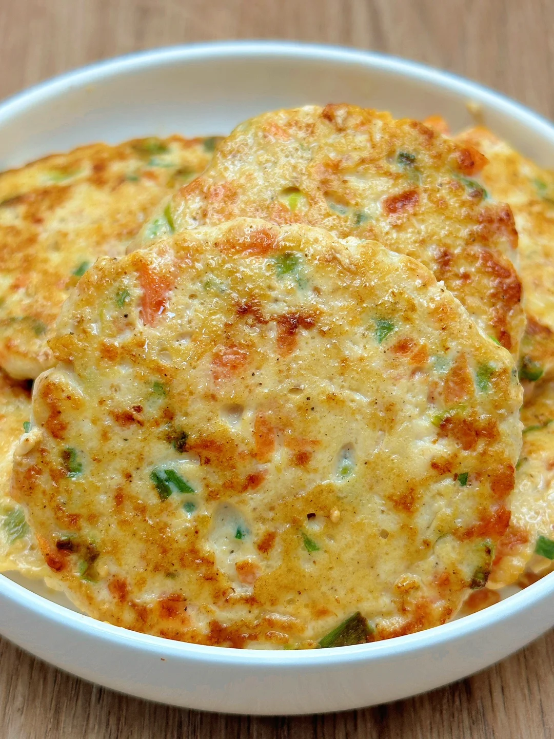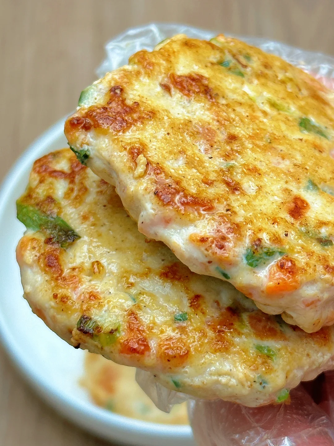 🥗食材:鸡胸肉1块、胡萝卜、葱花(做了9个饼)