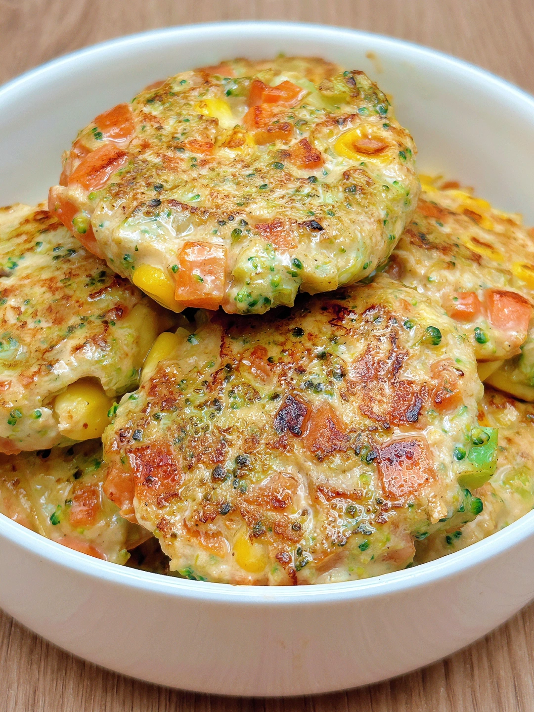 🥗食材:鸡胸肉1块、玉米粒、西兰花、胡萝卜(做了11个饼)