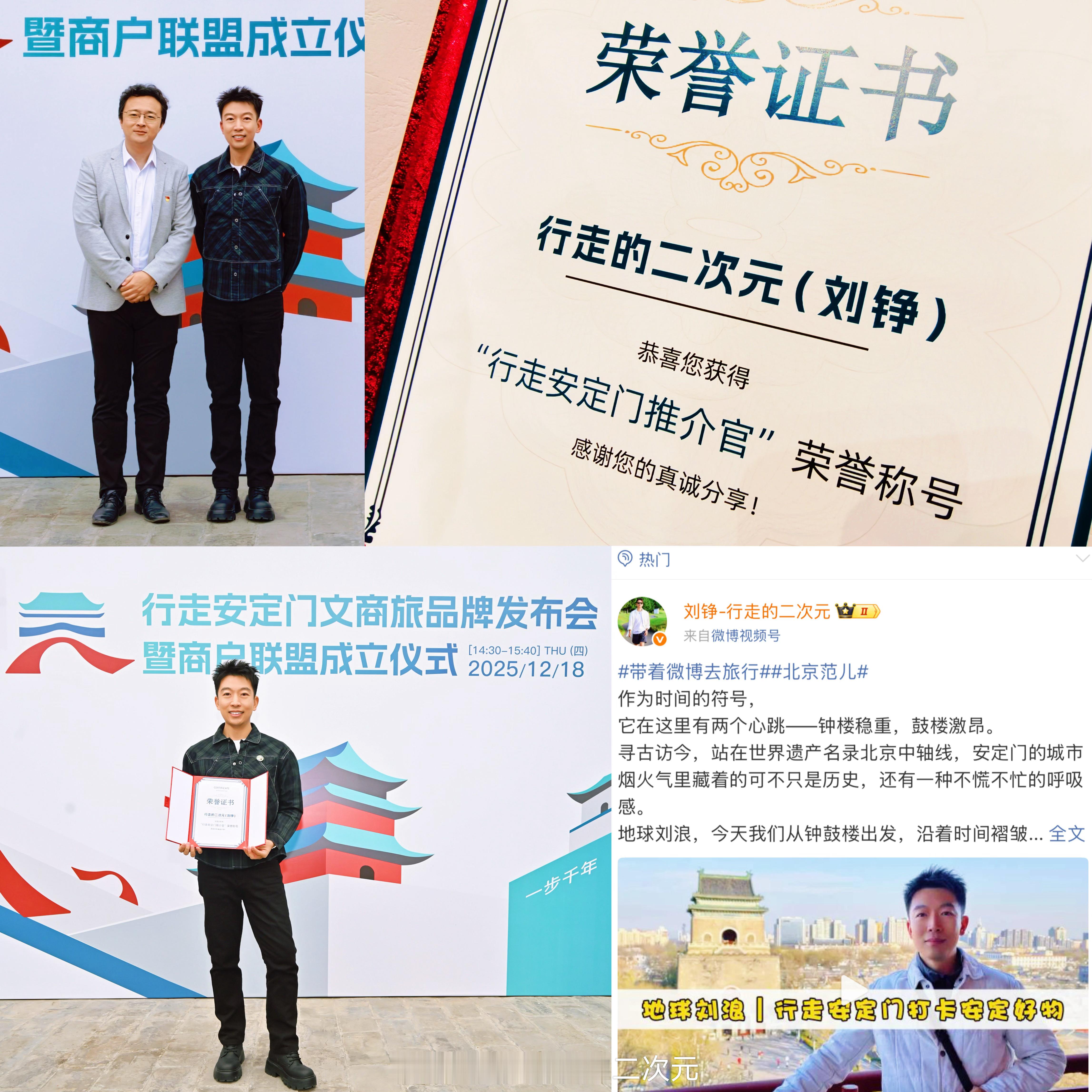 北京旅游休闲绿道北京范儿说到北京旅行,游走在中轴线位于北端的钟鼓楼绝对是中外游客必打卡人气之地,而位于安定门辖区内的古建、文化、园区、非遗与美食坐标更是举不胜举!尤其是辖区内街道两旁与覆盖区域的各个商家们同样也是必不可少的一份能量。近日由安定门街道工委联合东城区委统战部、区委宣传部、区文旅、区委网信等部门召开及发布的行走安定门文商旅品牌暨商户联盟启动仪式在观中内圆满礼成。会上,行走的二次元 作为旅行达人及此次行走安定门系列短视频原创作者连同科普垂类、摄影垂类作者代表一起获得首批“行走安定门推介官”荣誉称号。同时“行走安定门” 驿站IP 项目现场落地开启,其即是是核心载体同时也是流量枢纽与消费主场,驿站体系将以 “激活空间价值、联动商户资源、服务 IP 传播” 为核心,通过文创展示、联名运营、权益释放等方式,打通 “文化体验 - 商业消费 - 品牌传播” 的闭环,助力安定门街道实现全时段文商旅融合生态。城市巡游记 北京·观中