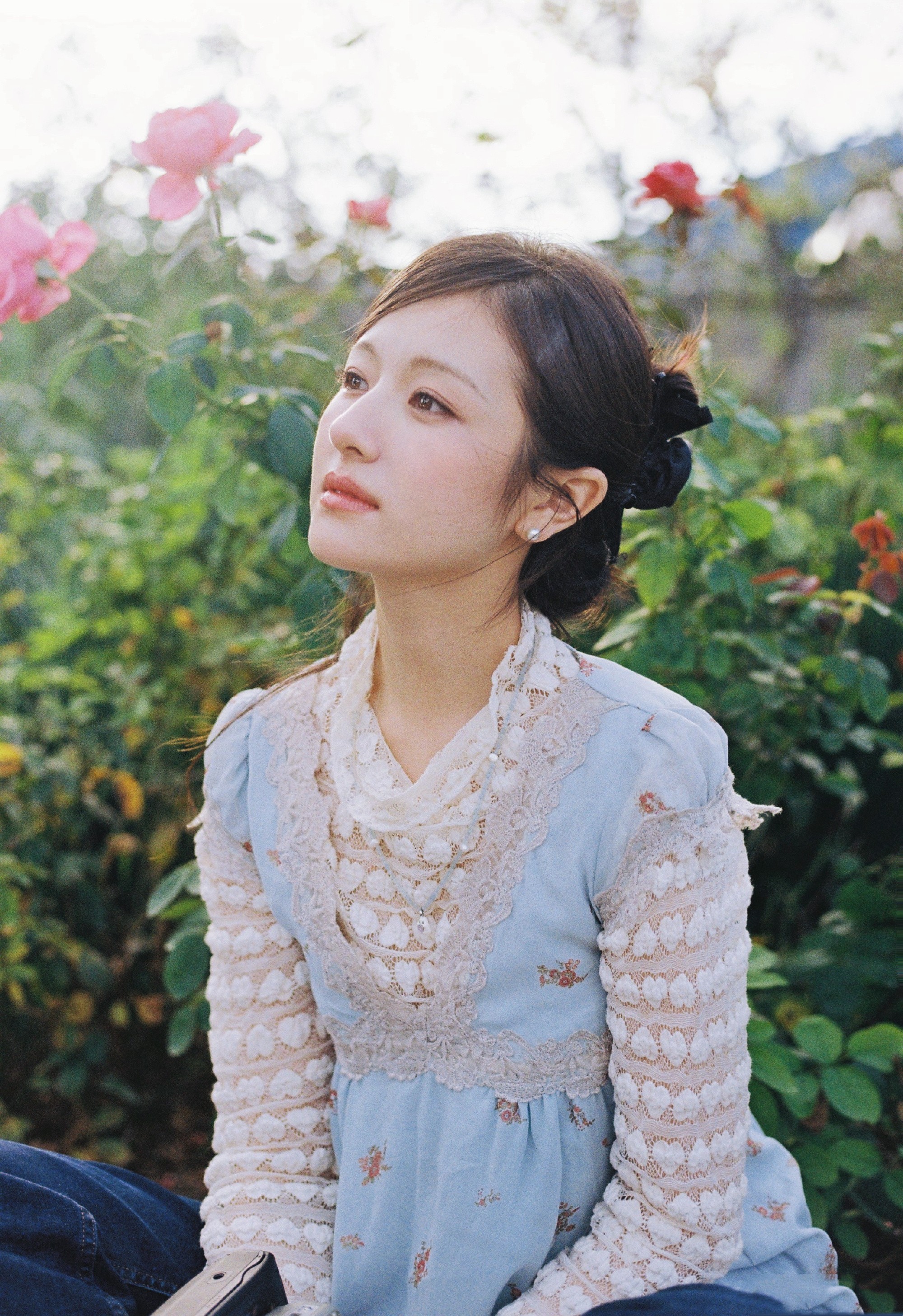 关晓彤,这大长腿配白色蕾丝中筒袜,个性魅力十足。关晓彤