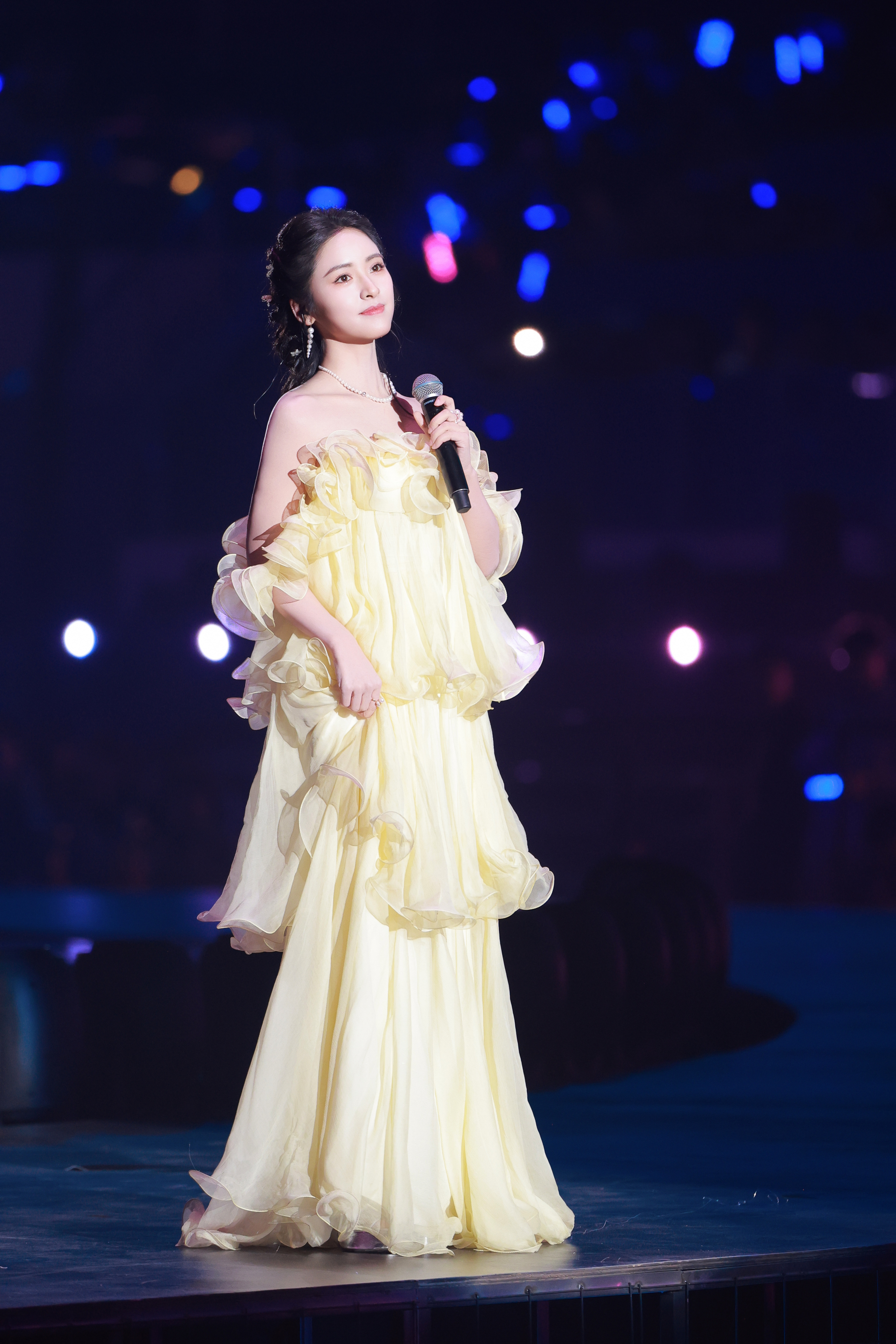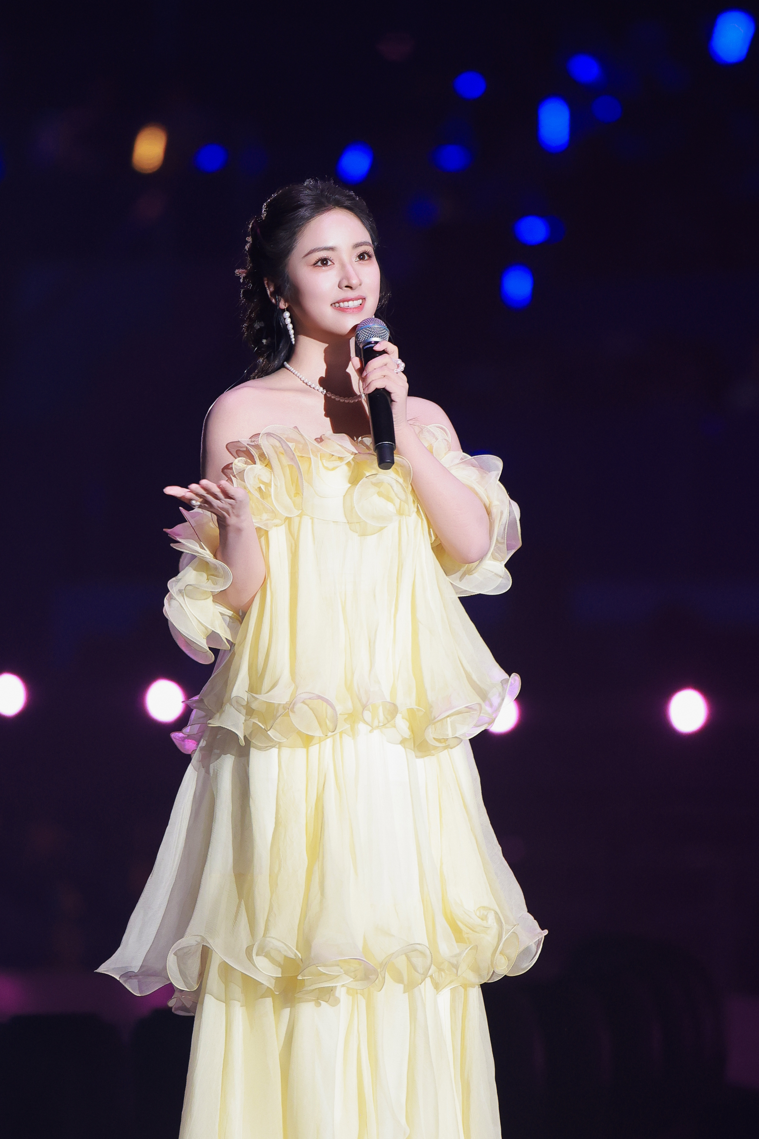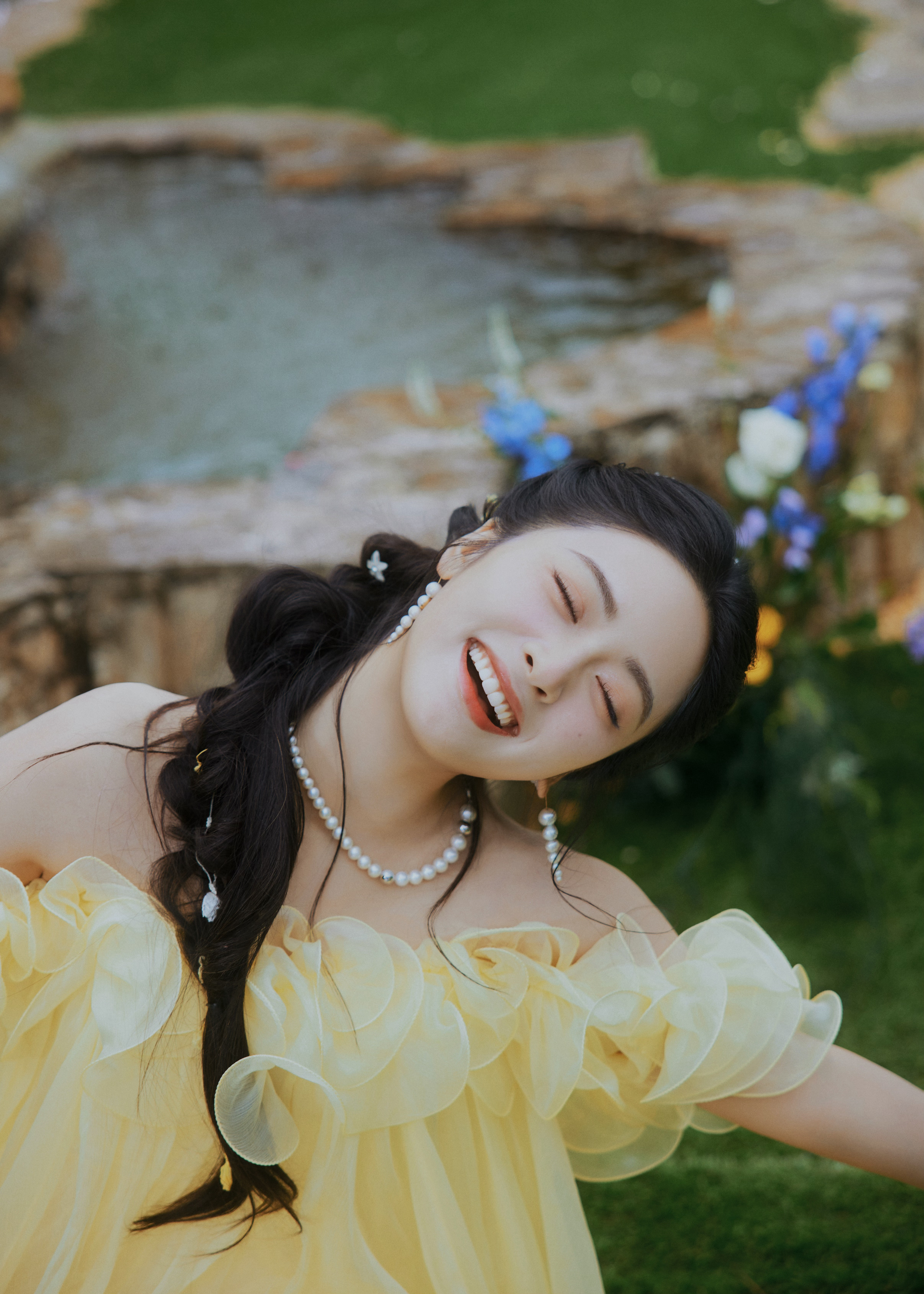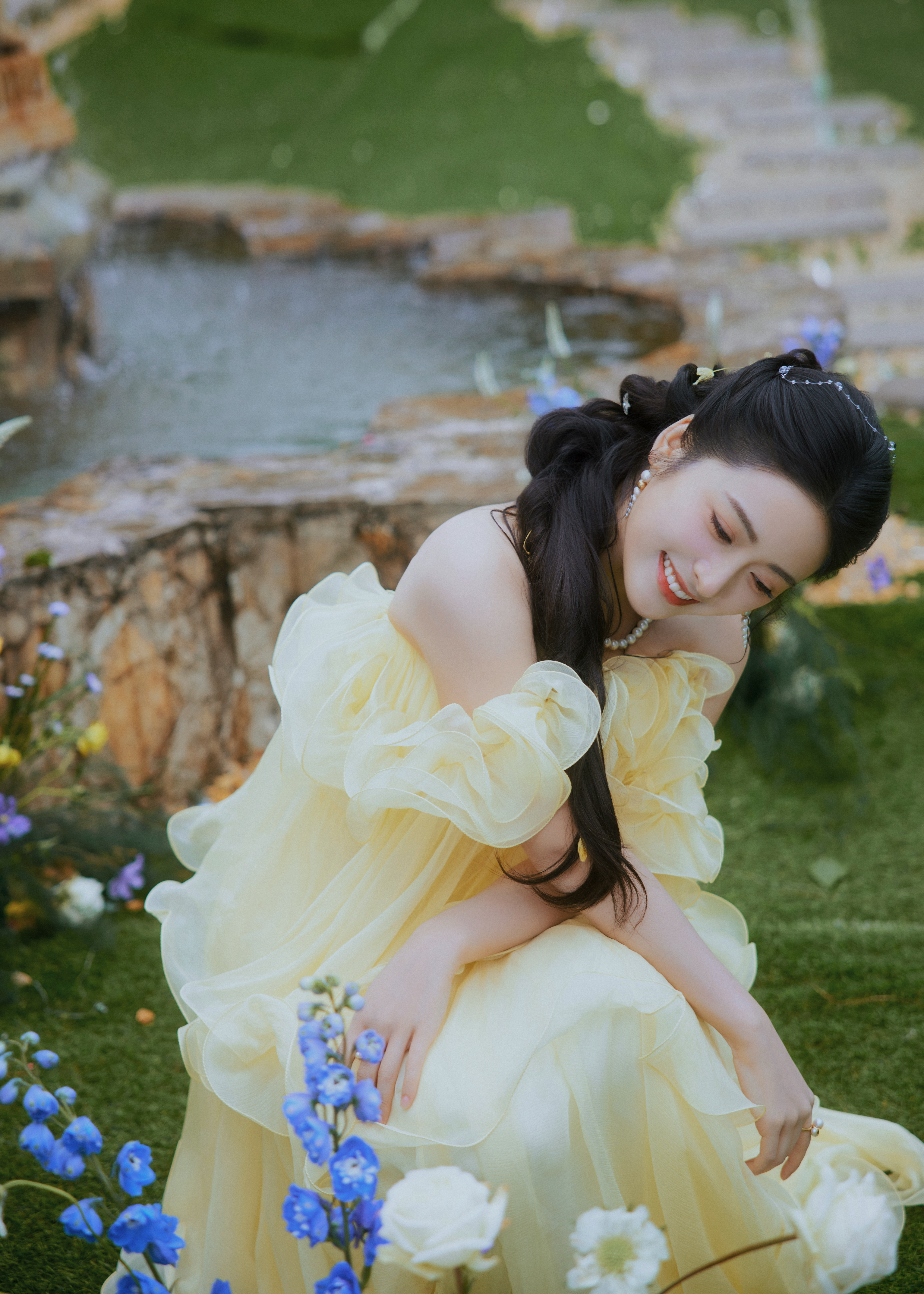 沈月 一字肩的浪漫,被鹅黄裙摆揉成了温柔的形状,气质藏在每一缕飘动的纱里。
