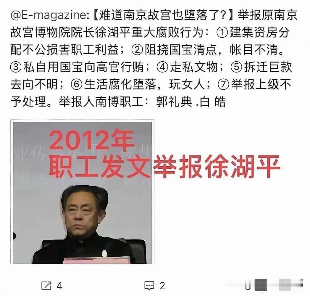 南博这几天一直都上热搜,全国各地博物馆是不是都跟南博一样呢?我也终于明白了北京故宫博物院单霁翔院长曾经说过的话“把一个壮美的紫禁城完整地交给21世纪”是故宫整治的目标,看来这个目标对于文物保护者来说本就是份内的事,可真正做到委实不容易。南京博物院也是中国三大博物院之一,要想把馆藏文物完好无损的保留传承下去绝非易事,有的院长为守护文物不惜丢了生命,到死还留下遗言要把自己的尸体埋葬在博物院院墙内,生前没有追回借而不还的文物,死后也要守着博物院的文物,没有南京博物院仇英《江南春》画作风波事件还没几个人知道姚迁这位令人尊敬的舍命护宝院长呢。 同样是南博院长的徐湖平,一人身兼三职,既是南京博物院院长又是文物总店法人还是江苏省收藏家协会首任会长,明明1259件馆藏文物剔除清单表上有他徐湖平院长本人签名,他却口口声声说不知情、没经手,试问都有本人签名的文书材料还说没经手不知情,难道为守护文物丢命的姚迁才是经手人吗?在被徐湖平剔除清单1259件文物中登记号第2918号文物名称《江南春卷》赫然在列,这不是明目张胆地监守自盗吗?更可笑的是卖家是江苏省收藏家协会首任会长、文物总店法人代表的徐湖平,买家则是江苏省收藏家协会顾问自称“顾客”的陆挺,本应实名俱名购买《江南春卷》,偏偏要写上“顾客”二字,这不是此地无银三百两吗?南博剔除的庞氏家族捐献的137件文物中的5件文物都是国宝级文物,徐湖平院长究竟从中分了几杯羹,让子弹再飞一会儿,我们吃瓜群众擦亮眼睛就等着吃瓜吧。