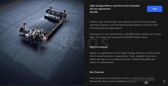 特斯拉电池延保服务,只需花费2000美金,从8年延长至10年。如果出现故障,维修再额外支付500美金,前提是电量必须降低到7成以下。