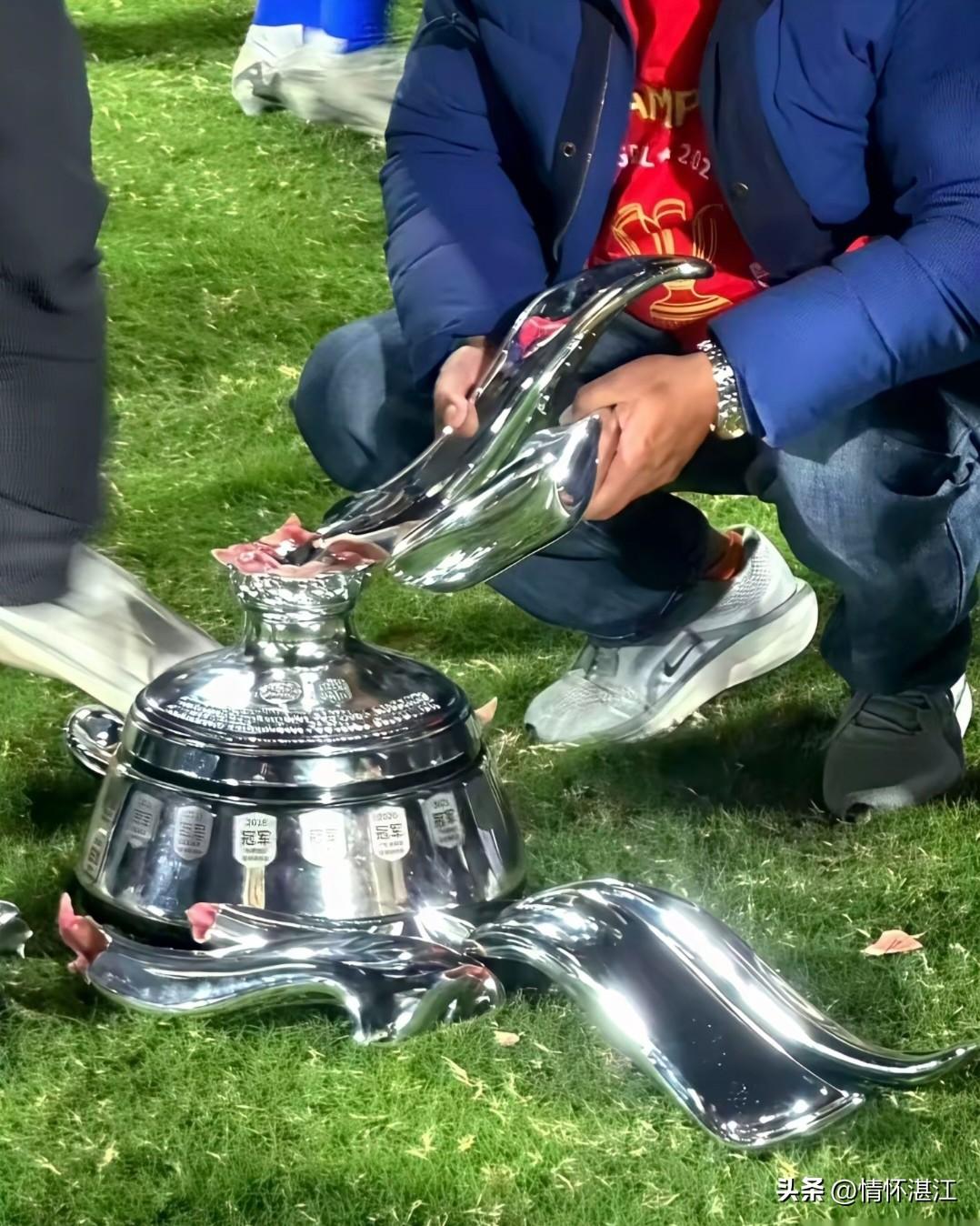有图有真相!网上传播的省超冠军奖杯破碎的图片是假的!12月20日,吴川市民在当地的江心岛举行巡游活动,热烈庆祝青年队获得2025年广东省足球超级联赛的冠军!从当时的场景来看,仿佛到了正月十五梅菉的年例一样热烈喜庆,更加有吴川的传统文俗飘色游行。更引人注意的是,吴川青年队球员还捧上省超冠军奖杯一起巡游!看看这个奖杯,不是好好的吗?!那么,得到网上传播的省超冠军奖杯破碎的图片是不是真的呢?有知道内幕消息的朋友就透露一下吧!