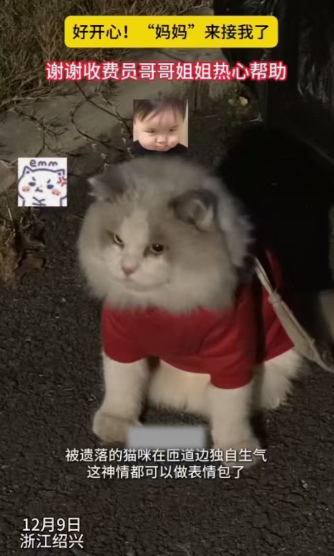 暖心!浙江高速收费站,收费员捡到一只穿戴整齐的猫,身上还戴着电话手表!收费员滑动手表发现有联系人“爸爸”“妈妈”,赶紧帮它找到了家长。