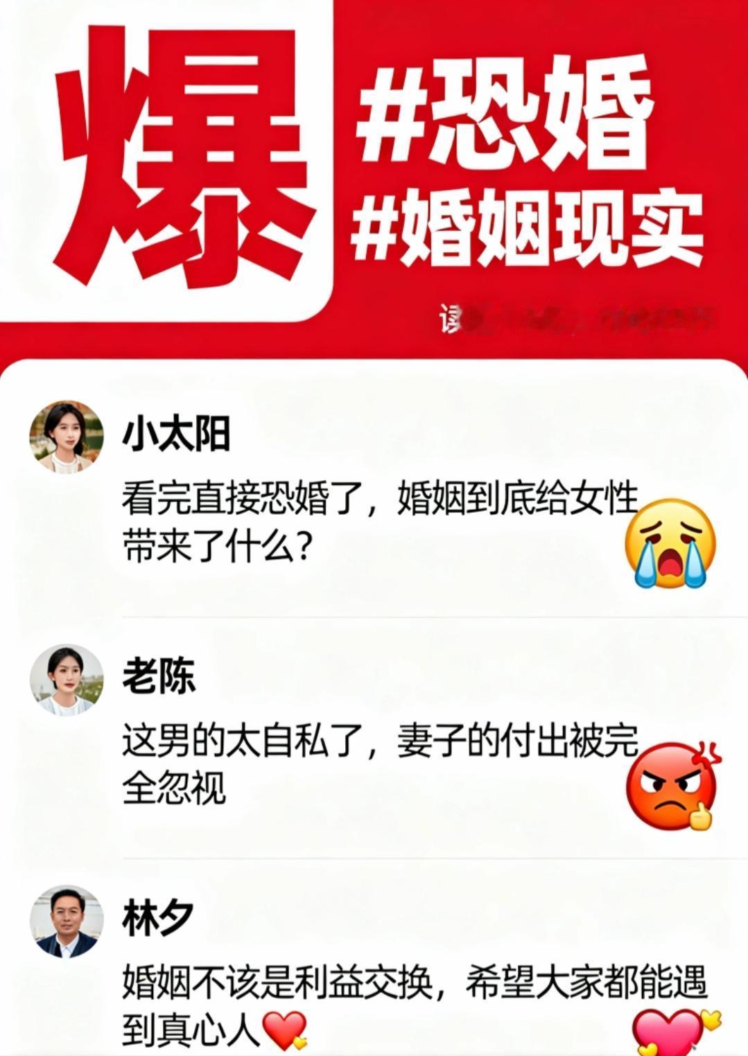 扎心!恐婚聊天记录刷屏,“生完变丑就离婚”,婚姻里的现实比刀子还狠! 家人们!今天刷到的聊天记录,直接给我看破防了! 一段疑似夫妻的对话曝光:男方直言“你生完孩子要是变丑了,我就跟你离婚”!这话一出,瞬间引爆全网! 有人说这是婚姻里最赤裸的现实,有人骂男方太自私冷血,还有人说“看完更恐婚了”! 婚姻到底是避风港,还是利益交换场?评论区聊聊你的看法! 恐婚