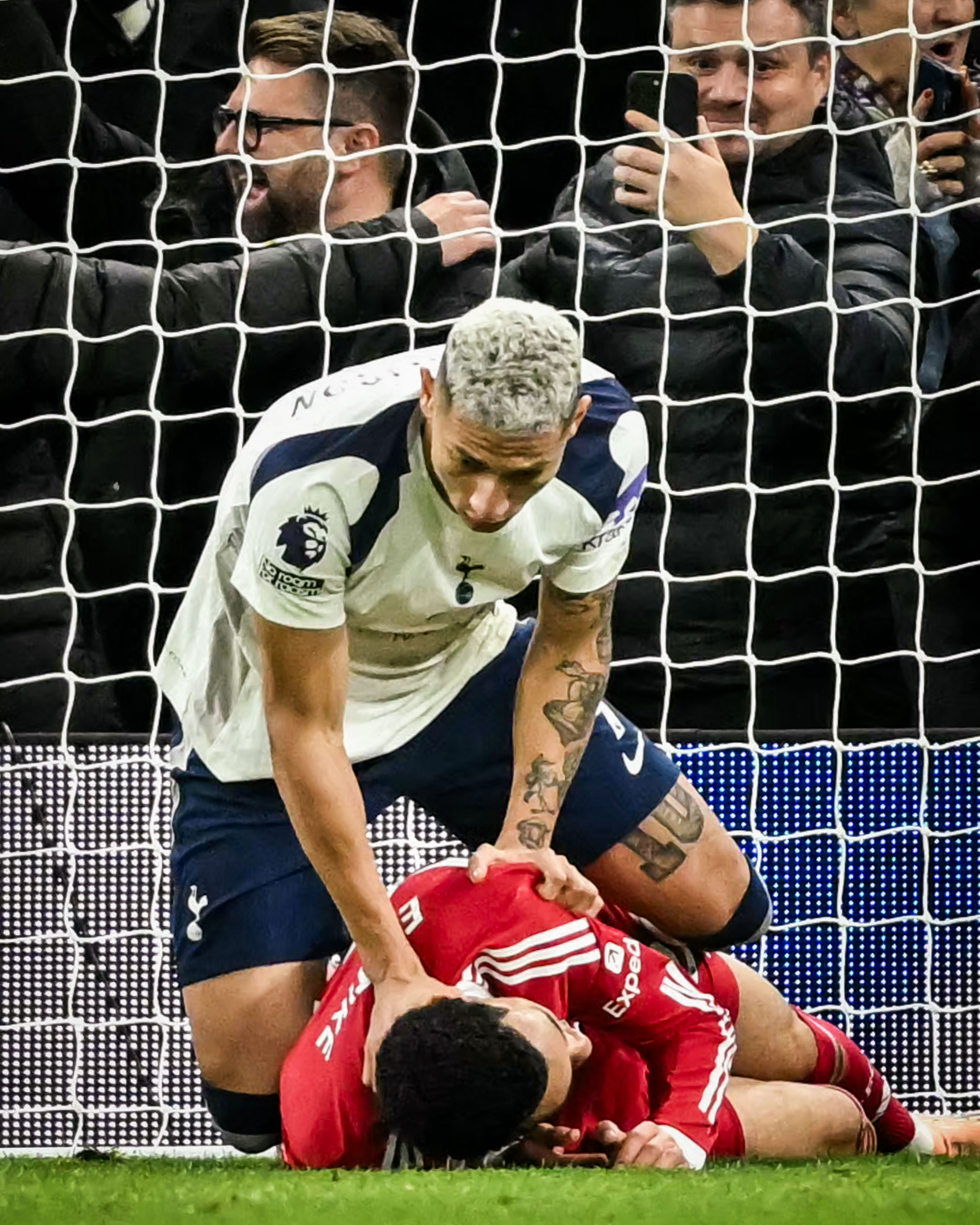 里沙利松目前已在4 场英超对阵利物浦的败仗中取得进球,这一数据与哈里凯恩并列,成为英超历史上在负于利物浦的比赛中进球次数最多的球员