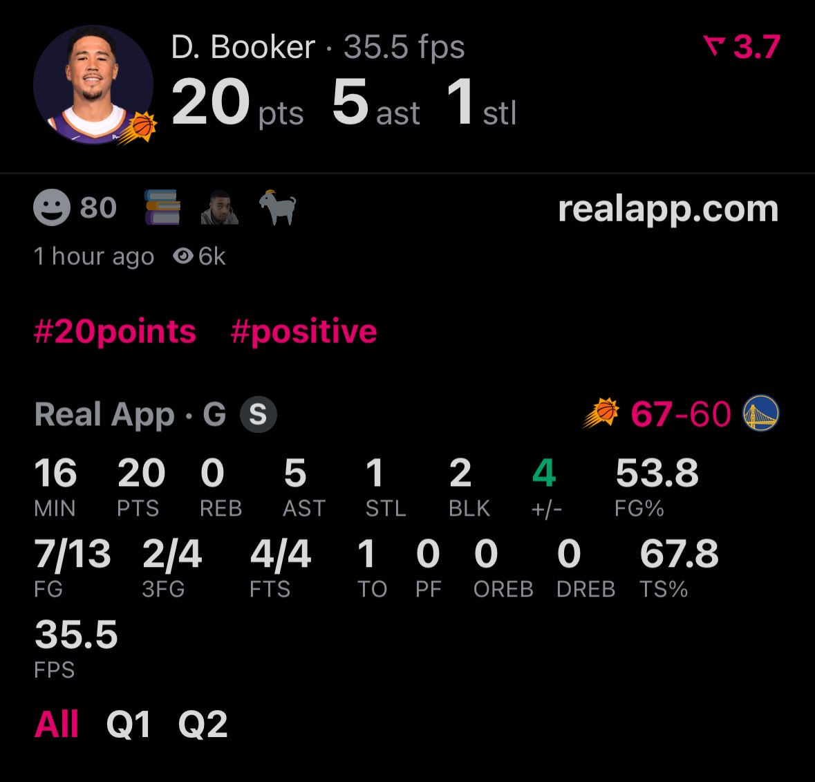 久违了....布克上半场拿到了20分5助攻1断2盖帽。希望狄龙和奥驴俩人在犯规控制和篮板保护上当个人吧太阳vs勇士追梦格林背后推人被驱逐