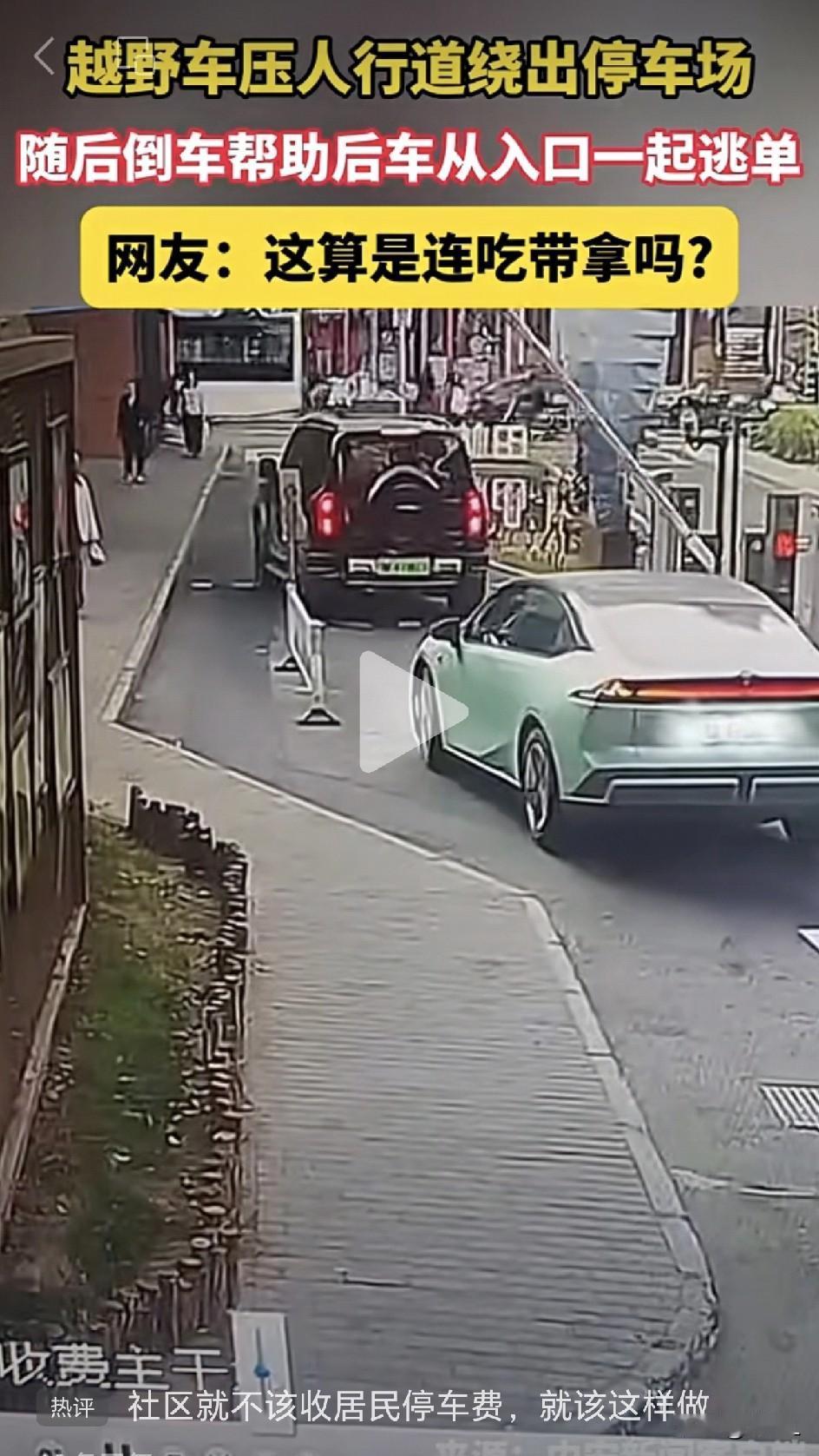 上海停车场惊现“逃费神操作”:黑色越野车“丝滑”带小绿车“免费”离场,网友直接看呆了! 这两天,一段上海某停车场的监控视频在网上火了。 12月19日,一辆黑色越野车在出场时,上演了一出令人目瞪口呆的“逃费攻略”。 第一步:不走寻常路 这辆黑车明明该走出口道闸,却偏偏直奔入口处。到了跟前,方向盘猛地一打左转,直接骑上了旁边的马路牙子人行道。 远远看去,车子“收腹提臀”、车身斜抬,竟刚刚好擦着道闸杆边上溜了过去——没碰杆、没刷卡,顺利“突围”! 第二步:倒车回来“做好人” 你以为它跑了就完了?更精彩的还在后头。 黑车溜出去后,居然慢慢倒了回来,重新靠近入口道闸。 这时,后面一辆绿色小车正缓缓向道闸驶来。入口摄像头“眼疾手快”,一扫到黑车的车牌——啪,道闸杆抬起来了! 黑车和小绿车一前一后,像约好了似的,“恩爱”并肩,潇洒离去。 全程不过十几秒,行云流水,把监控和网友都看傻了。 视频一发上网,评论区瞬间炸锅: “‘省钱’这一块,真是被你们玩明白了!” “这算连吃带拿吗?” “这么丝滑,肯定不是头一回干了!” “秩序就是被这种‘聪明人’搞乱的,还带坏风气!” “精打细算成这样,这辈子吃不上四个菜!” “进来的时候是不是也这么爬进来的?建议查查回放!” “唉,有这脑子用在正道上多好。” “人想逃账的时候,智商真是巅峰状态。” 目前,停车场管理方是否注意到这一幕、后续如何处理,还不得而知。 但这一幕着实给大伙上了一课:原来停车场道闸,还能这么“配合”着过……关键看脸皮够不够厚、认知够不够低! 毕竟,监控时代,你能逃哪儿去? 这事你怎么看?是“机智省钱”还是“丢人违规”?欢迎评论区聊聊! 信息来源于洪观新闻,侵联删!