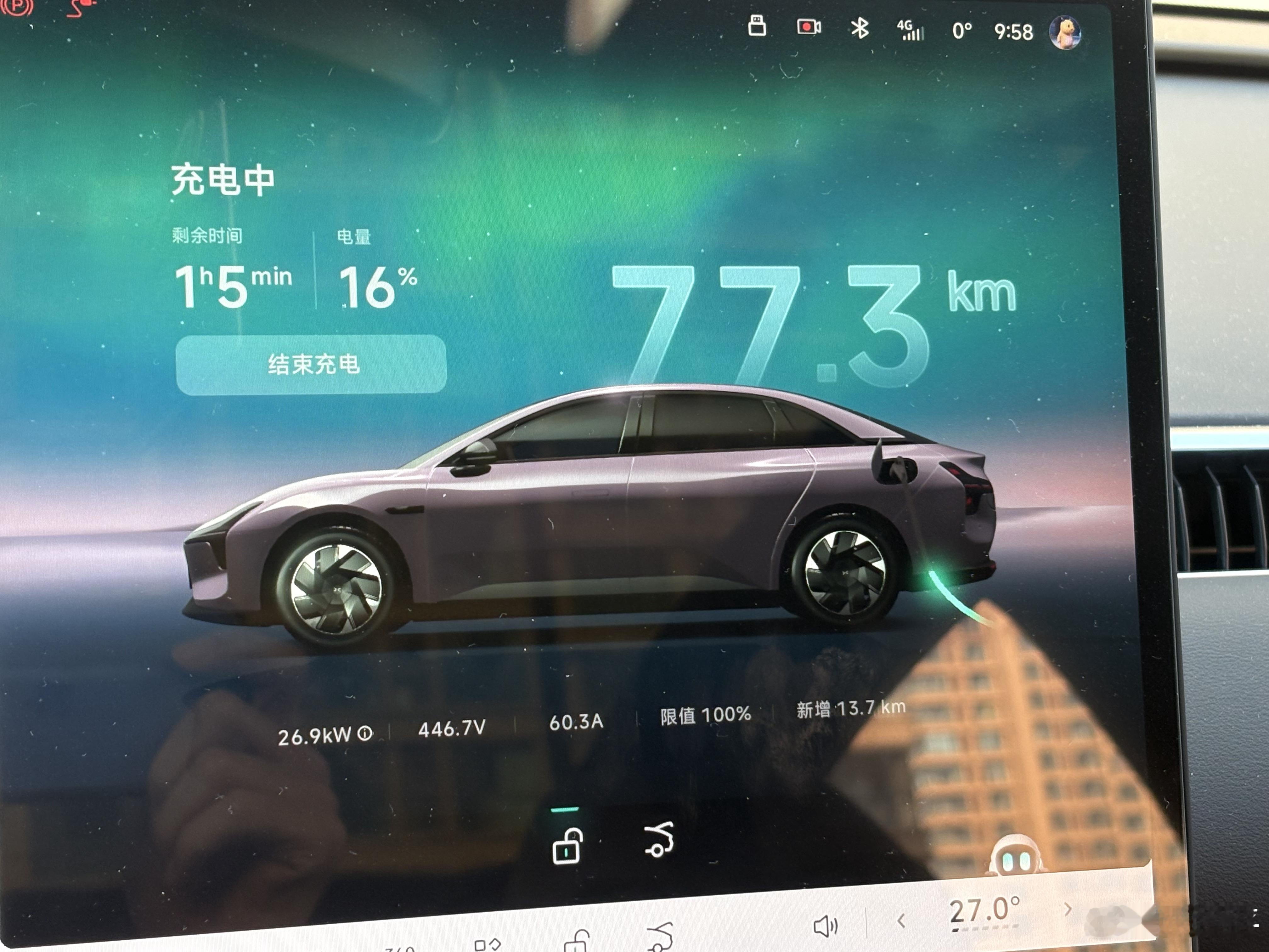 第一次把电量开到这么低,从充电速度来看,果然30%-80%才是最效率的区间。零下的气温加上电量到底,从来没见过20多kW的功率。新能源汽车大v聊车