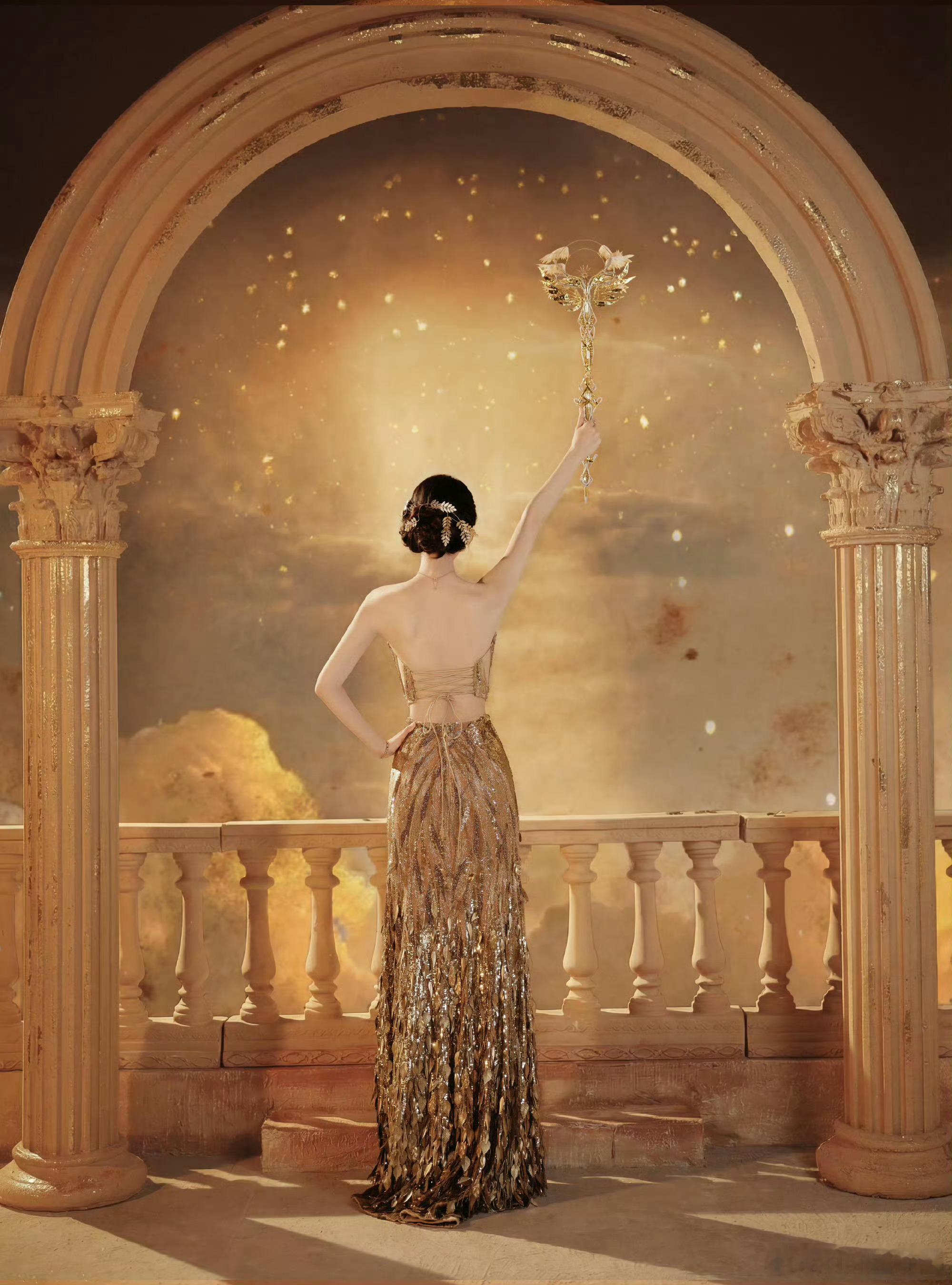孟子义今日出席2025腾讯视频星光大赏 的造型, 穿了一条Rahul Mishra 2025秋冬高定礼服,搭配 BVLGARI 珠宝, 华丽、金灿灿的一身仿佛化身希腊女神! 星光大赏出图
