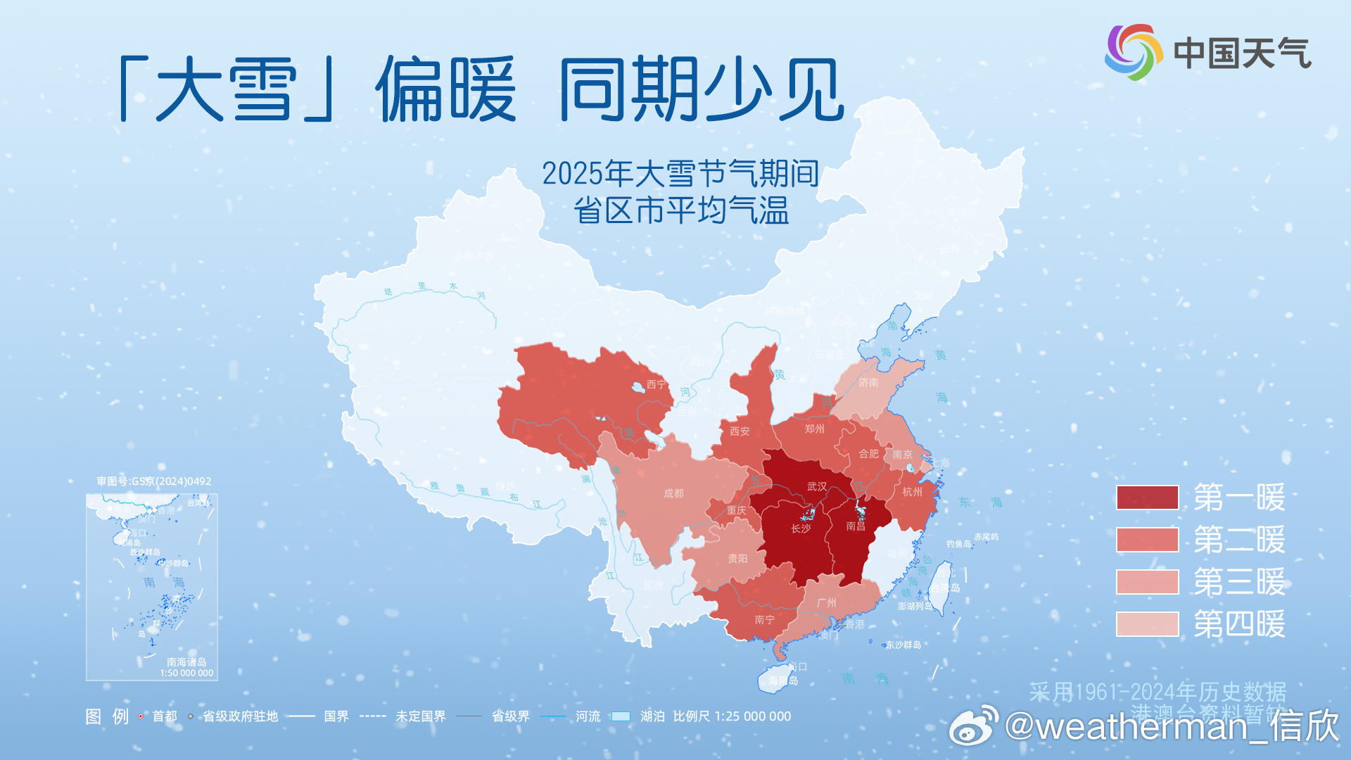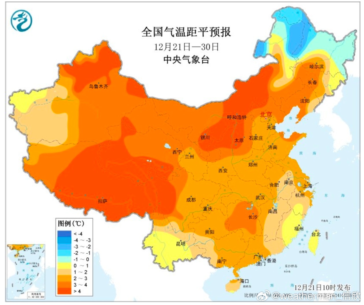 冬至 今天冬至。回顾大雪节气期间,全国面积加权平均气温零下0.6℃,偏高2.2℃,为1961年以来第二暖的大雪节气。从省区市平均来看,湖南、江西、湖北度过最暖的大雪节气,青海、浙江、陕西、河南、重庆、广西、安徽为第二暖,贵州、江苏、广东、四川为第三暖。未来冷空气频繁,但实力不强,气温虽然有起伏,但总体还是偏暖。对应12月21-30日500百帕平均高度场,我国大部地区处于高空脊区控制,高度场偏高。冬至开始数九,今冬一九,总体偏暖,没悬念。