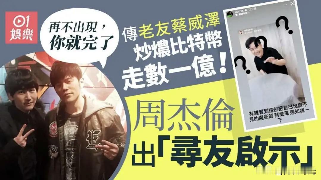 周杰伦公开喊话寻蔡威泽 此事闹得挺大 几年前 周杰伦委托蔡威泽 代操1亿新台币 (约2300万人民币,也有说320万美元) 投资比特币 如今蔡威泽失联数月 此前 币圈刚迎“最大爆仓日” 一夜爆仓192亿美元 明星与泛娱乐公司 热衷投资比特币 有人赚有人赔 托熟人代投风险高 无法律保障 操盘手多不专业 遇市场波动易血本无归 此次风波暴露币圈信任风险 币圈水太深 投资需谨慎