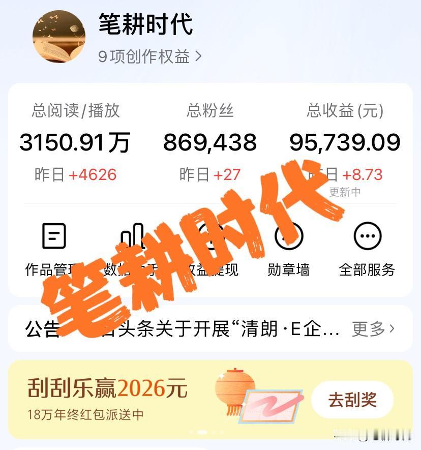 看来头条钱不是那么好挣了!写头条快两年了,只赚10万还差几千。想着凑10万整就躺平了,这几天的发文流量让我怀疑人生。 我都在怀疑自己没有足够的大脑,自嘲没有文字天赋,写不出优质的作品。 现在我都分不清什么才算优质领域? 看有的创作者每天都在写有人去世的内容,看得很瘆人。可是作品阅读量非常高,都是几万几十万的。 有的每天写家长里短、鸡毛蒜皮之事,全篇啰里啰唆,单价却奇高。 如今写作都不知道写什么了,有时犹豫半天也不知道写啥。 有人靠写作养家买房,我靠写作养心病。整日坐在电脑旁,体重蹭蹭涨,近视度数高涨,为了一点收益,争分夺秒地创作。 昨日一天写作,换来今天的收益只有8元,还不够一顿早饭钱。我的心态崩了。 这个下半年的几个月没赚到多少岁没收益,记得在六月份都8万多了,选在才9万多,凑这个十万真的太费劲了。