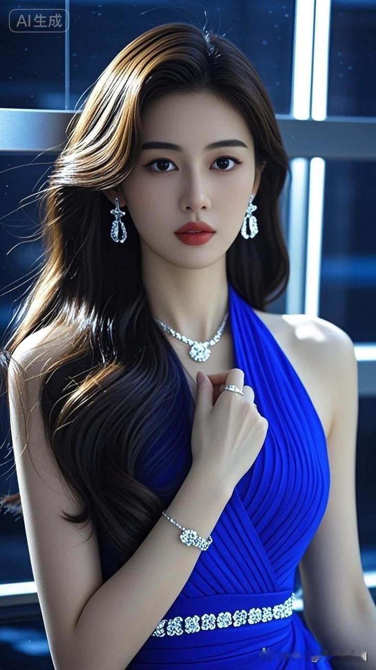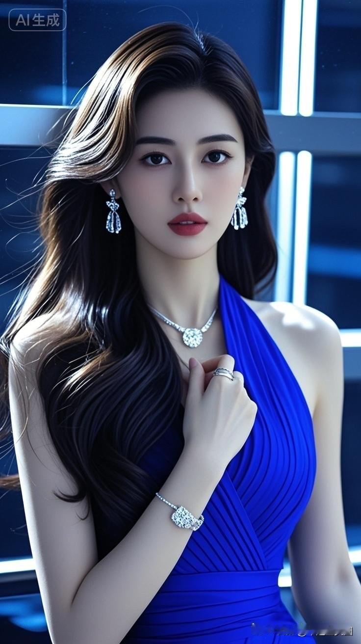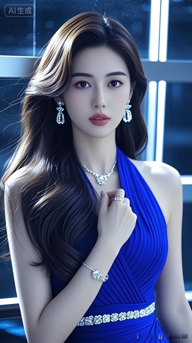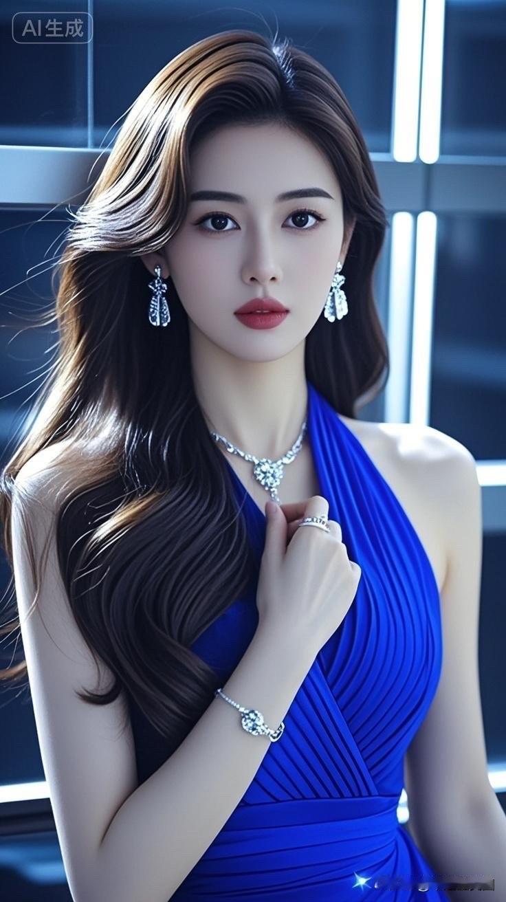 优雅蓝裙,闪耀珠宝,气质女神💎✨