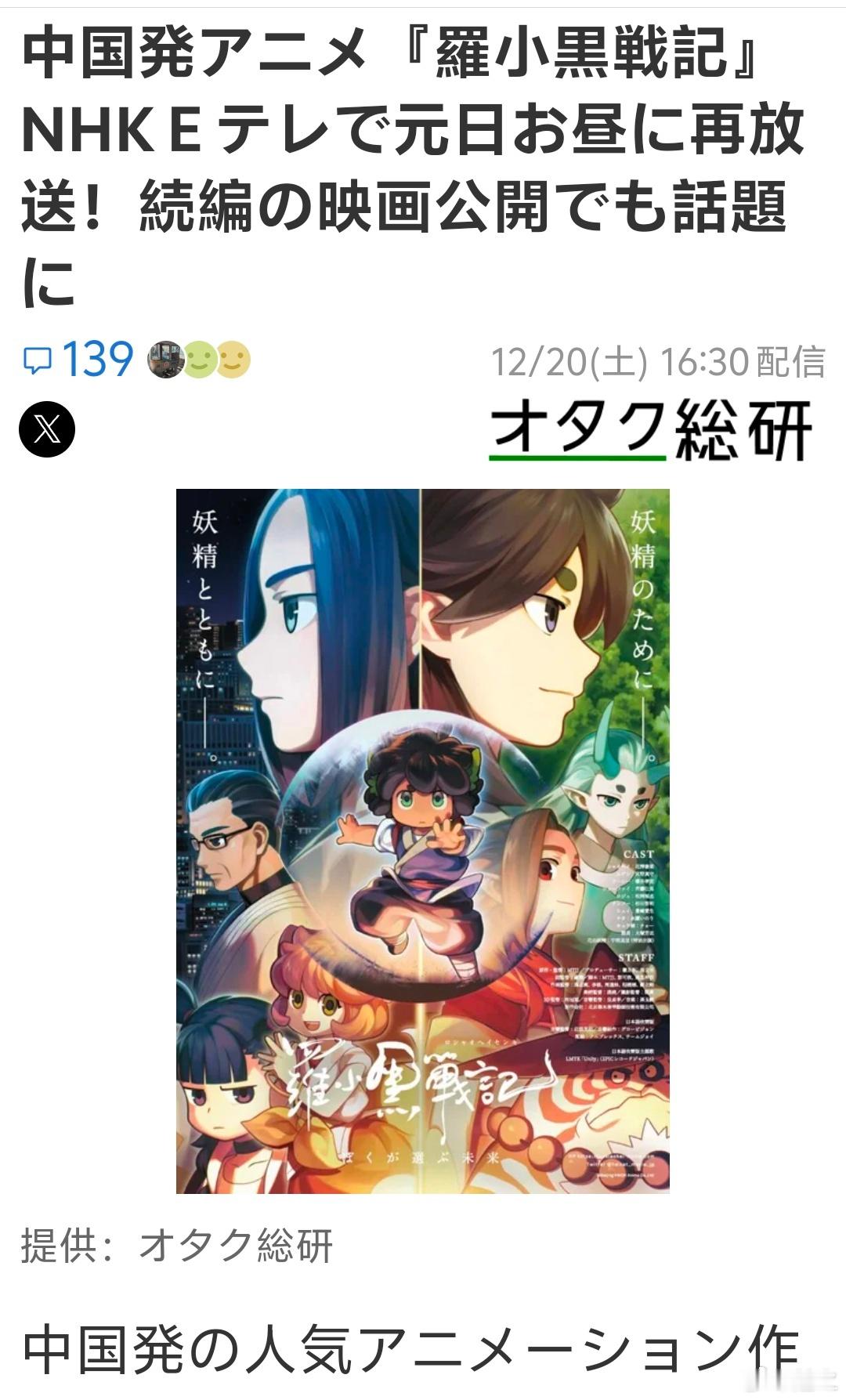 明年1月1日,NHK台播罗小黑1,这个倒是不多见。