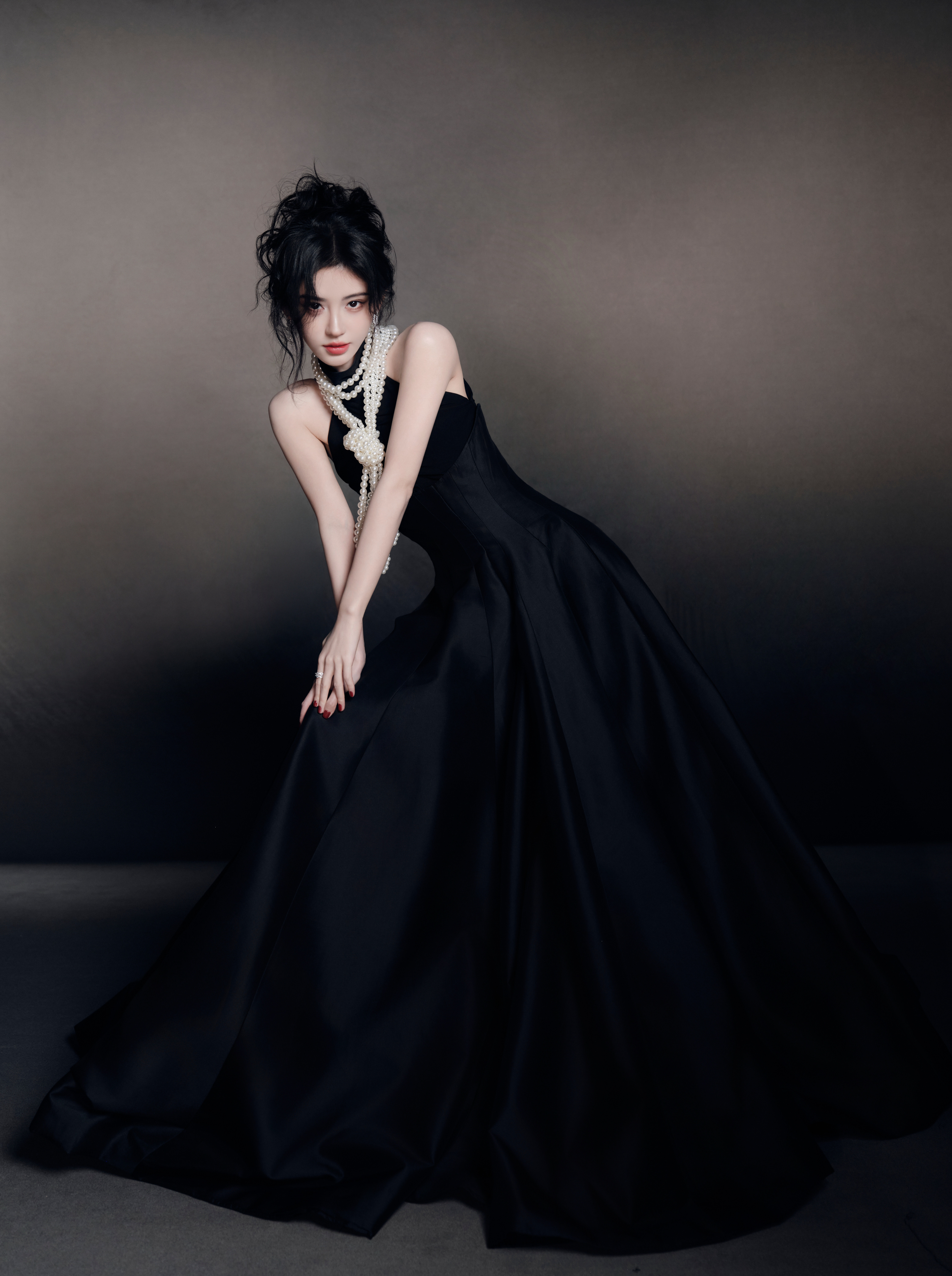 鞠婧祎 黑缎礼裙裹着玲珑身段,珍珠缠颈勾勒出柔润的轮廓,优雅与媚态揉成了暗夜最撩人的风风景。鞠婧祎珍珠名伶