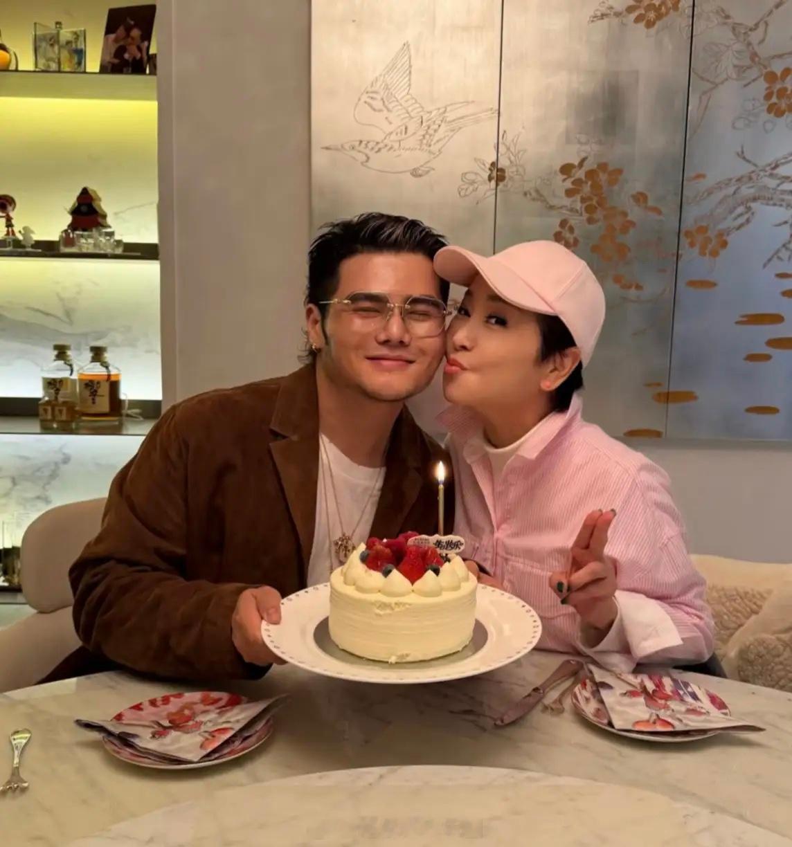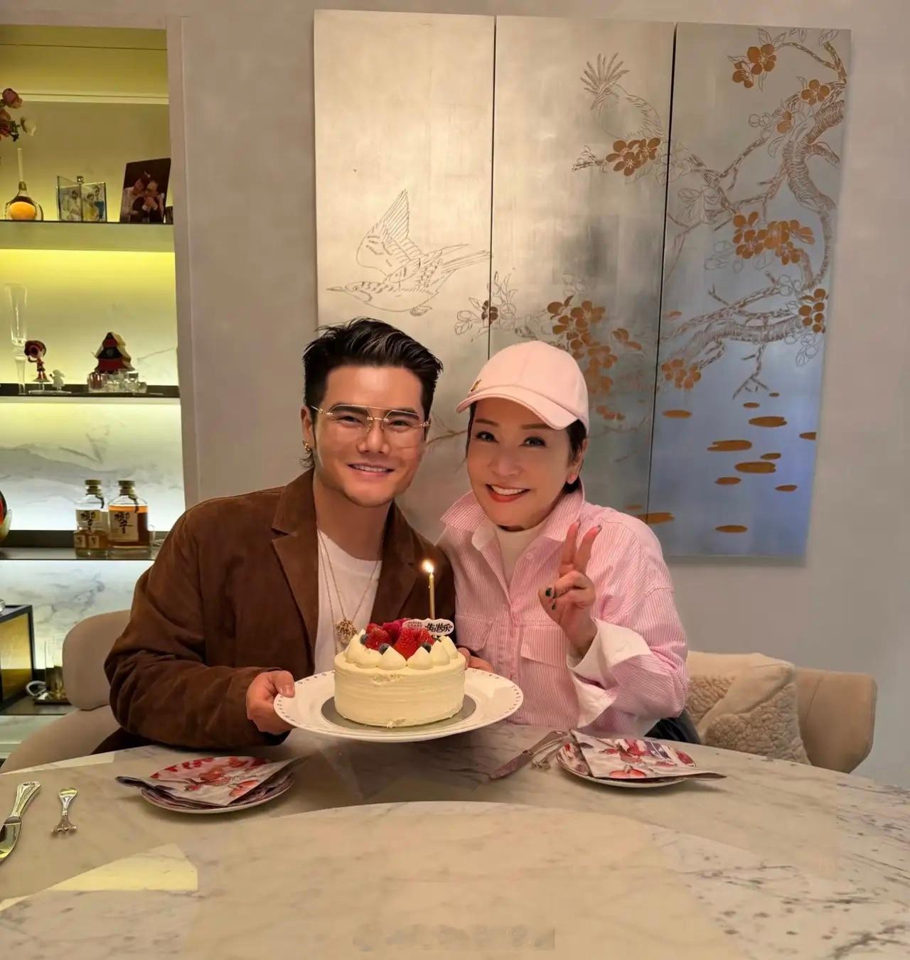 74岁狄波拉为男性友人庆祝生日,两人肢体接触亲密,她还做出亲吻他脸颊的动作,看起来关系真好!