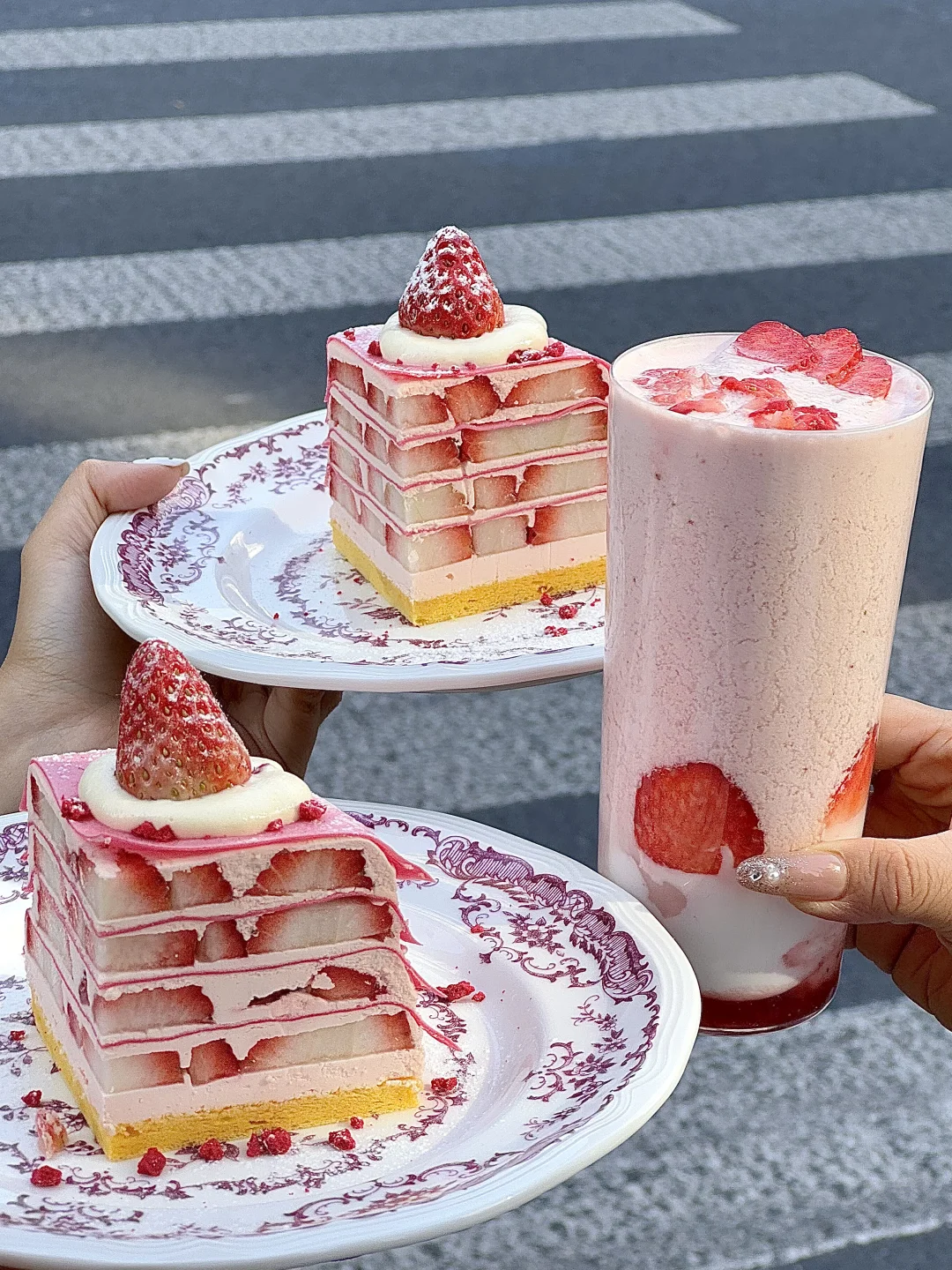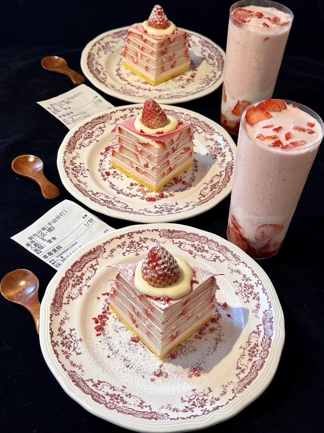 不用排长队就能吃到首尔超火的草莓千层塔了🍓(叫金姐老火锅)