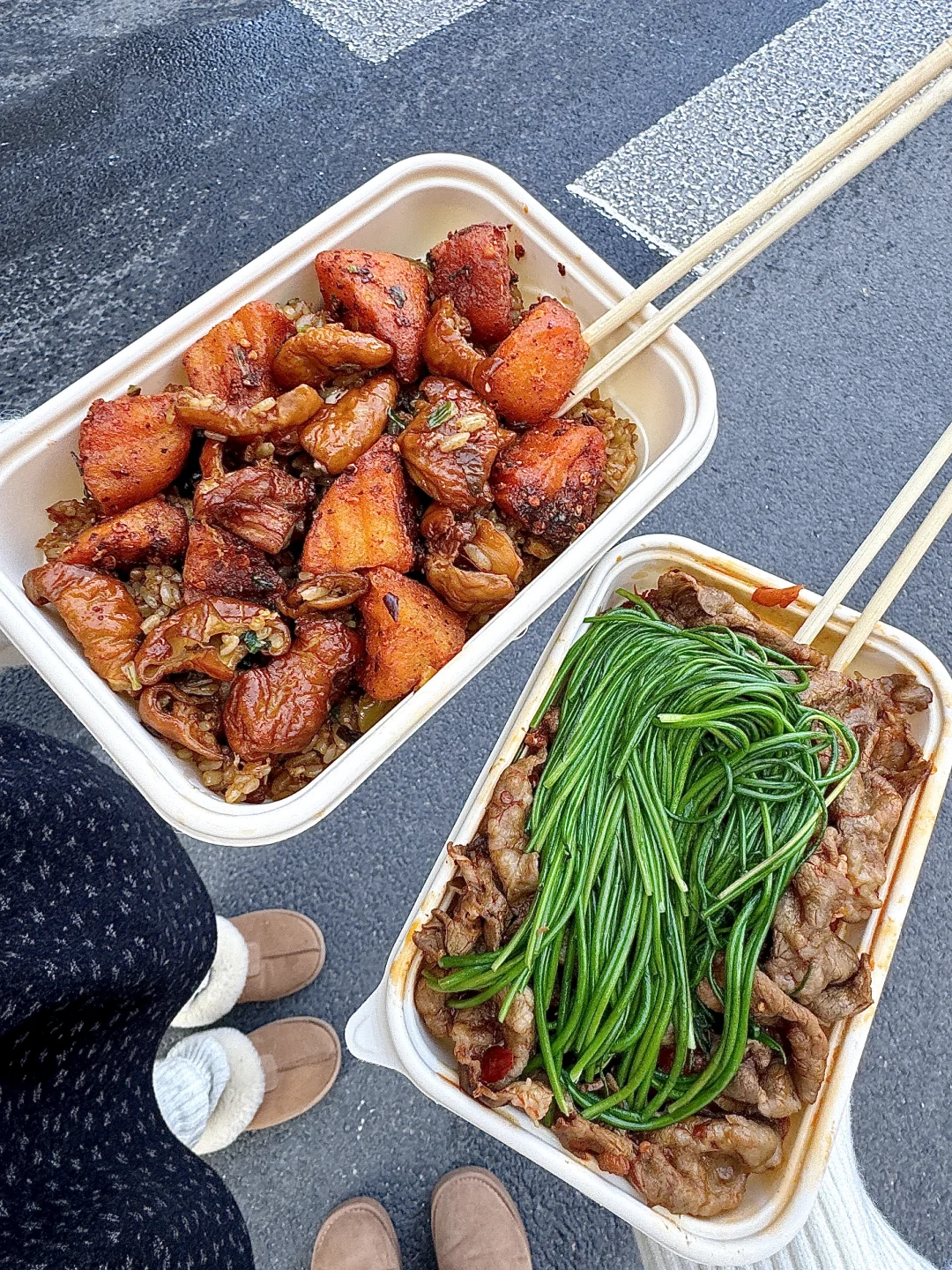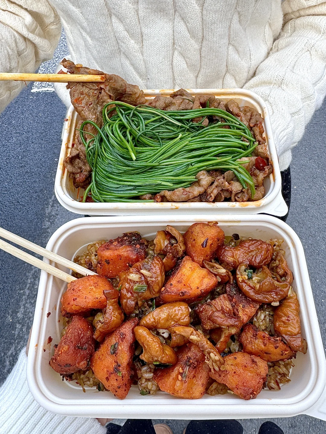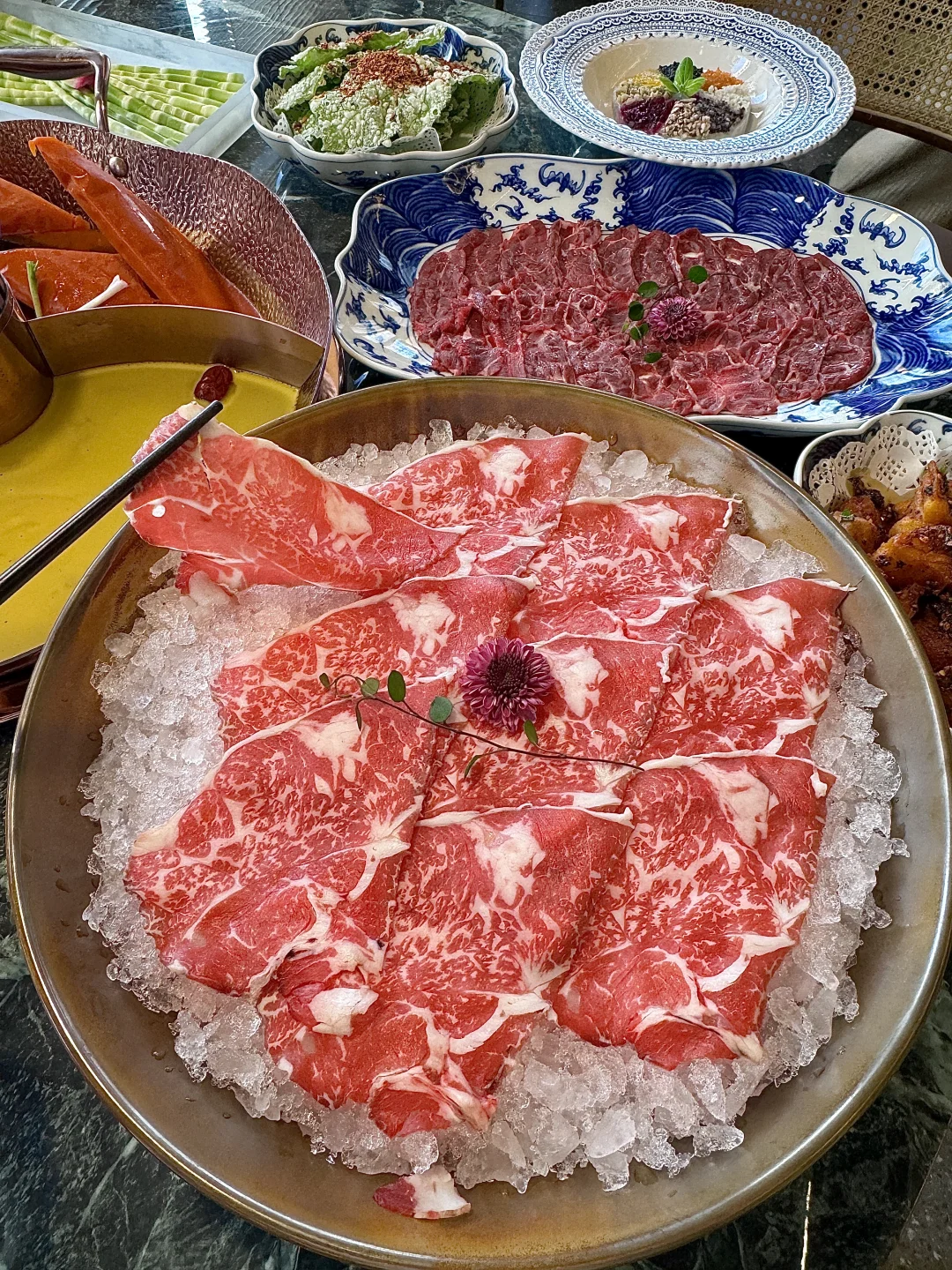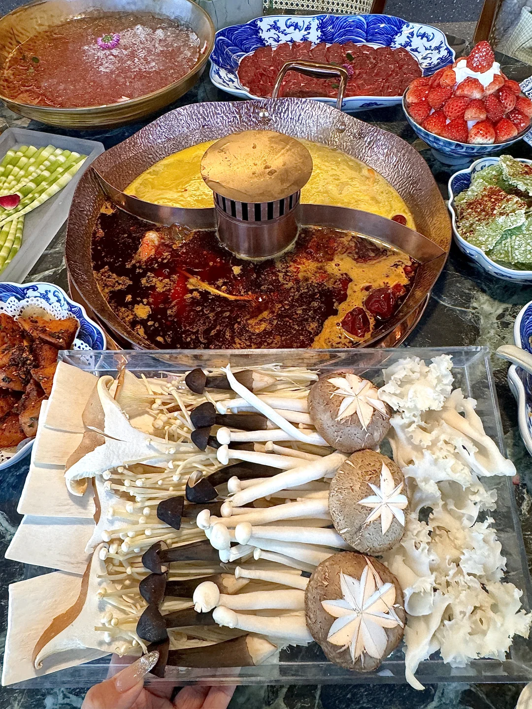 肥肠炒饭、炸桑叶、锅巴土豆🥔、沙葱、爱马仕虾滑、菌菇拼盘、雪花牛肉……直接闭眼点,没有一个不好吃的~