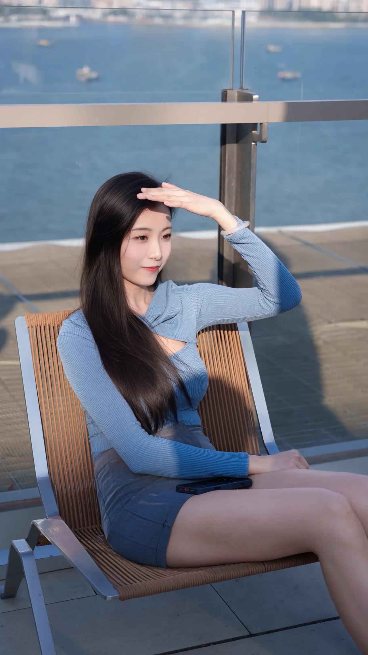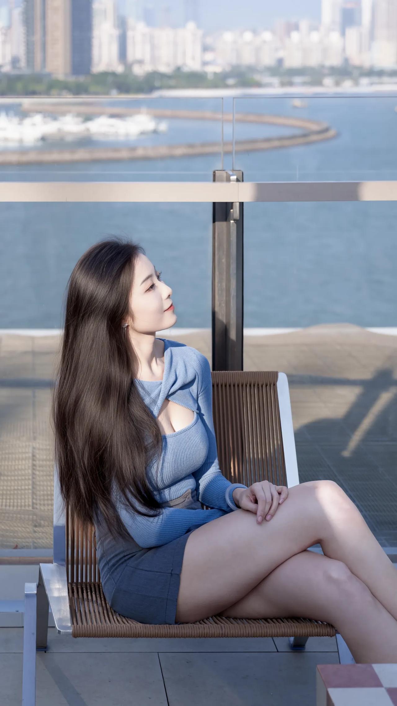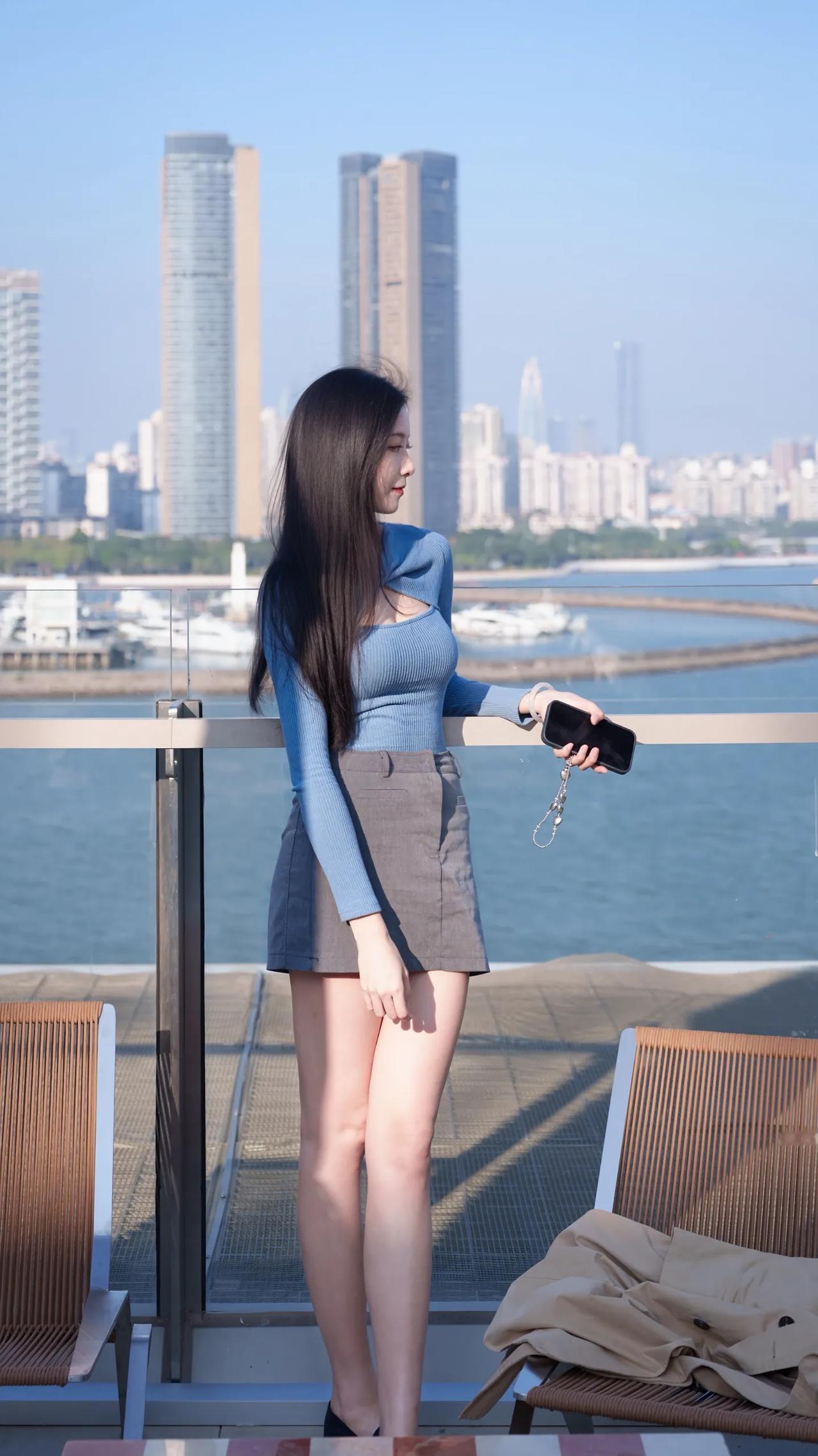 海风吹拂着蓝调针织衫的温柔,城市天际线成了最美的风景,这一刻的松弛感刚刚好