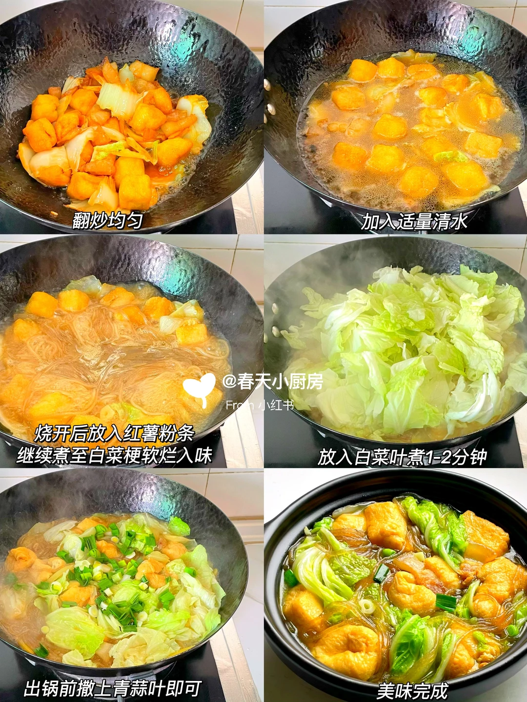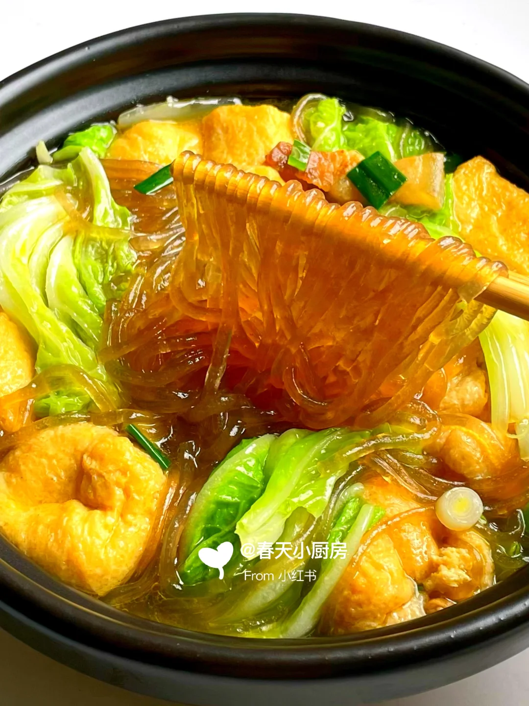 一人一碗入冬养生汤 🌈🌈给肉都不换的白菜烧油豆腐,低卡低脂,油豆腐吸满汤汁,一口下去满嘴汁,搭配爽滑劲道的粉条,真的太过瘾啦!做法简单,快试试~