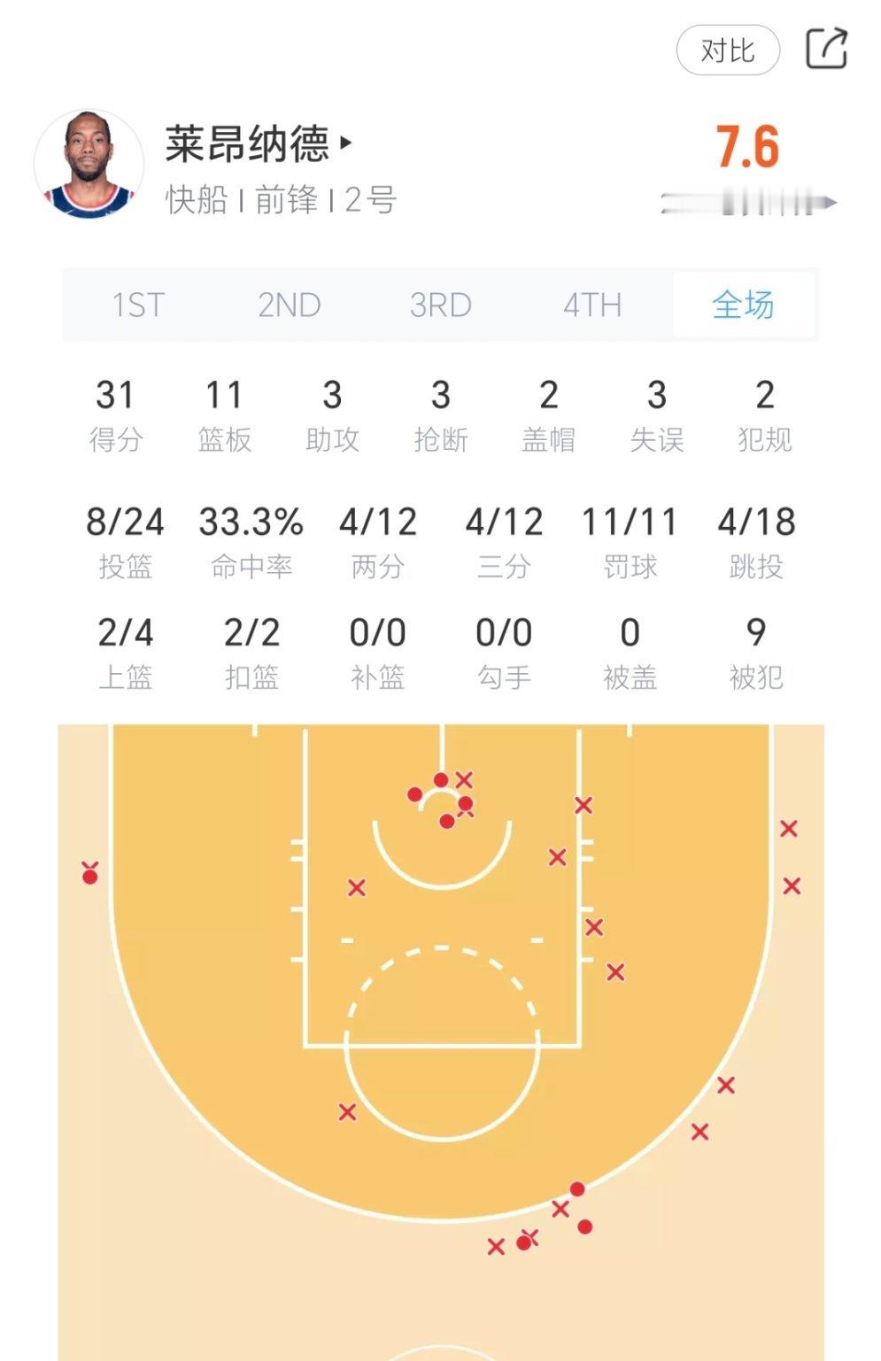 小卡今日对阵湖人表现:出战42分钟24投8中,三分12中4、罚球12中12拿全队最高32分外加12篮板3助攻3抢断2盖帽,正负值+16。湖人vs快船