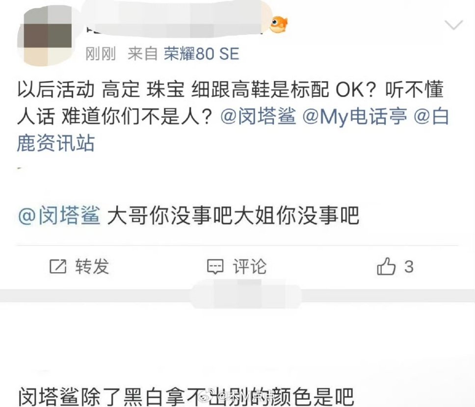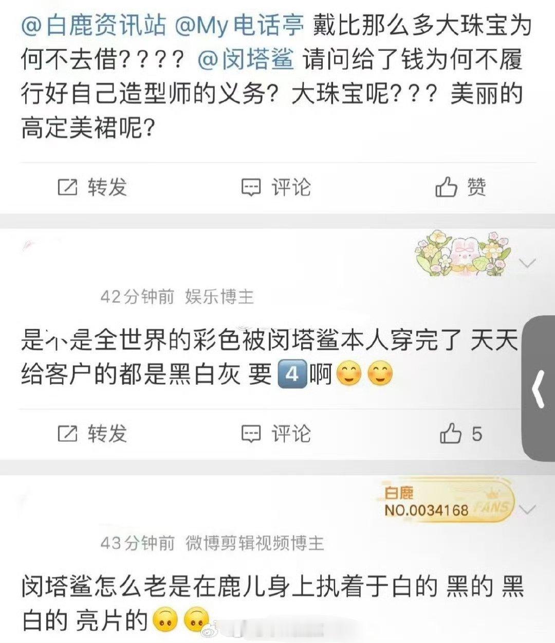 白鹿星光大赏造型,年末最热闹的活动,女明星争奇斗艳的场合,闵塔鲨给白鹿的战袍却是件奇奇怪怪的黑白灰高定礼服。闵塔鲨致力于给每个女明星挖掘最丑的裙子…用美丽的妆,美丽的脸,美丽的发型,真服了配丑绝人寰的裙子 闵塔鲨毁了花粉最期待的红毯。。。白鹿星光大赏妆星光大赏出图闵塔鲨给白鹿准备的裙子