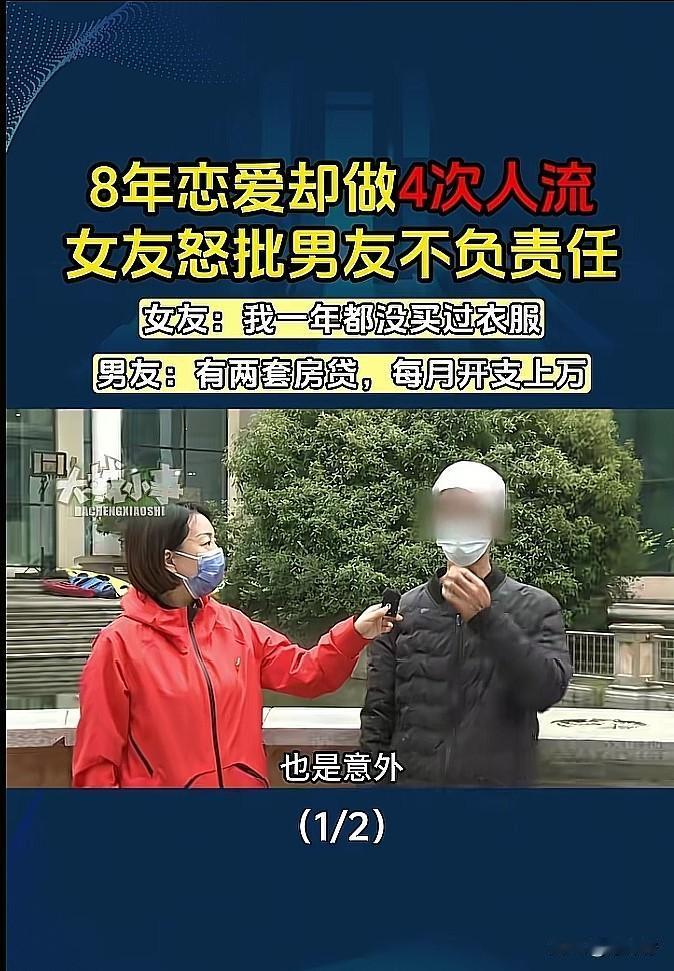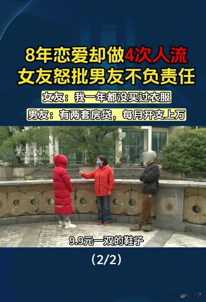 太炸裂了:8年恋爱4次流产,男友没钱结婚,女友穿8.9元的裤子跑外卖,这个傻姑娘到底图啥呀? 王女士跟男友同居8年,结婚证没领不说,反而背上了一身债。 为了省钱,衣服都是穿十几年前的,身上穿的裤子8块9、鞋子9块9。这日子过得有多紧巴?孩子的学费都交不起,还得靠她半夜两三点跑外卖、做兼职来填补窟窿。 反观她那个男友,日子过得那叫一个潇洒。每个月工资也不算低,8千到1万五呢!可他嘴里永远只有两个字:没钱。 理由是“有两套房贷要还”、“还有八九万其他贷款”。钱去哪了?反正没花在娘俩身上! 最让人王女士气愤的是:自己身体本就不好,还前前后后做了4次人流手术,男友却说“都是意外,只是偶尔”,还会趁自己睡着的时候进行。 更绝的是! 王女士跑外卖累死累活,男友却在家躺着休息,让他去跑个单,他直接拒绝:“太累了,不划算”。 最后,经过调解员的劝和,王女士给了男友半年时间来改变,男友表示自己知道错了,会好好过日子! 生活 感情 恋爱