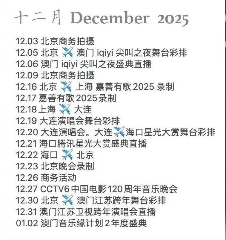 刘宇宁 内娱劳模哥 音乐现场、影视盛典、商务片场、跨年直播…他的行程地图上画满了连接南北的飞行线。上一秒还在海口的星光下领奖,下一秒可能就在北京的录音棚里打磨新作。歌手、演员、代言人,身份切换自如,行程马不停蹄。这不仅是劳模,更是内娱“全能马拉松”选手的魄力!