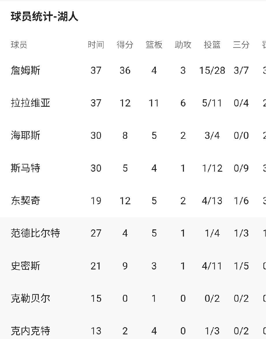 詹姆斯又空砍了! 本赛季状况不佳的快船可算过年吃个饺子,主场拿下西部第4的湖人,赢下同城德比大战。 角色球员比拼,快船也更胜一筹,面对湖人并不强大的内线,快船的科林斯打开心了,出场31分钟,拿到17分12板,10投7中,3分球也有,3投2中。替补中锋洛佩斯也发挥不错,打了24分钟,贡献11分5板,远高于赛季平均值的5.8分1.9板。