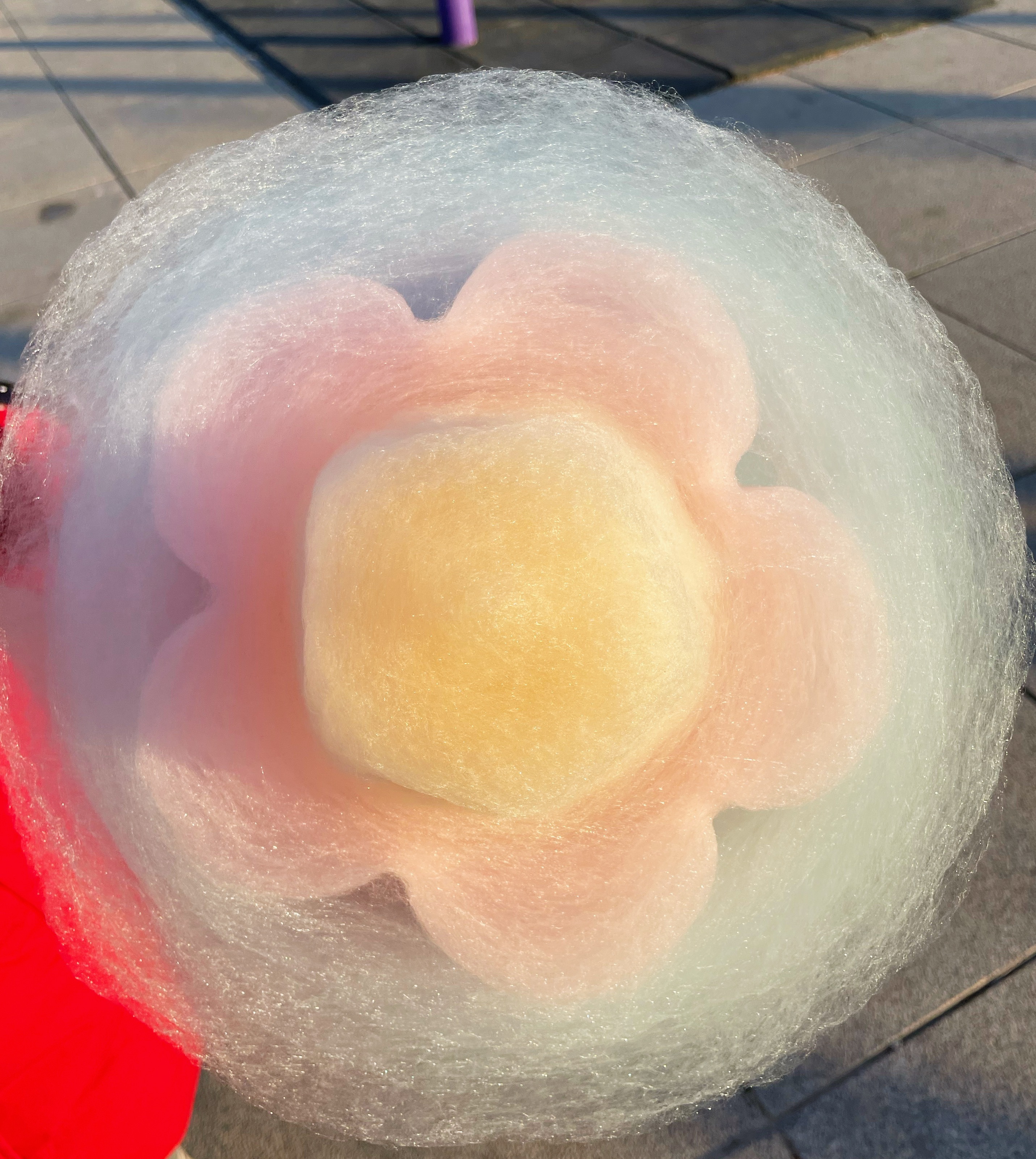 公园一个棉花糖25元,好贵。女儿趴在机器上不走,买了一个,吃的满嘴五颜六色