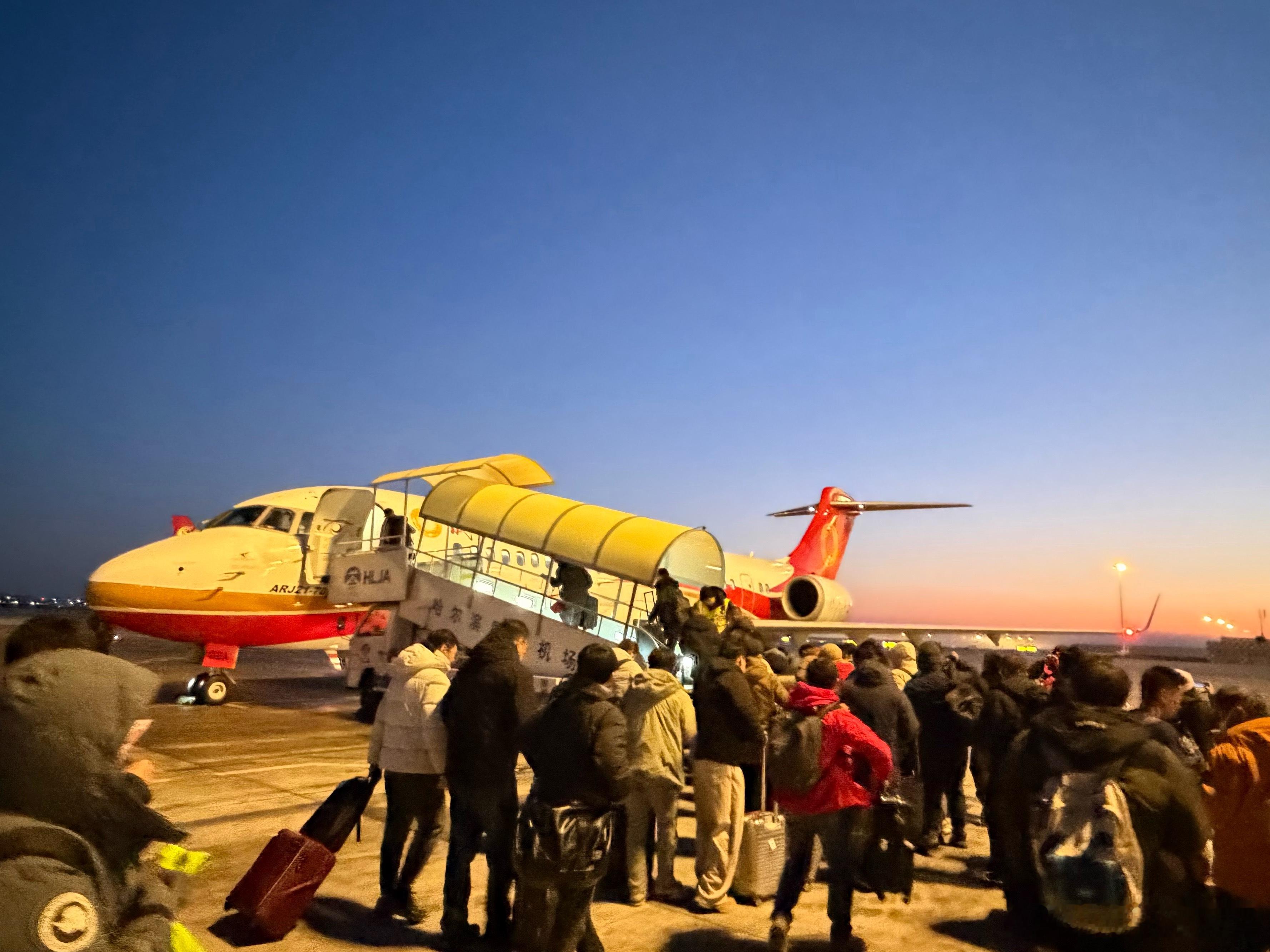 解锁乘坐的新飞机C909低估了室外温度和排队速度,10分钟就冻得跟狗一样c909